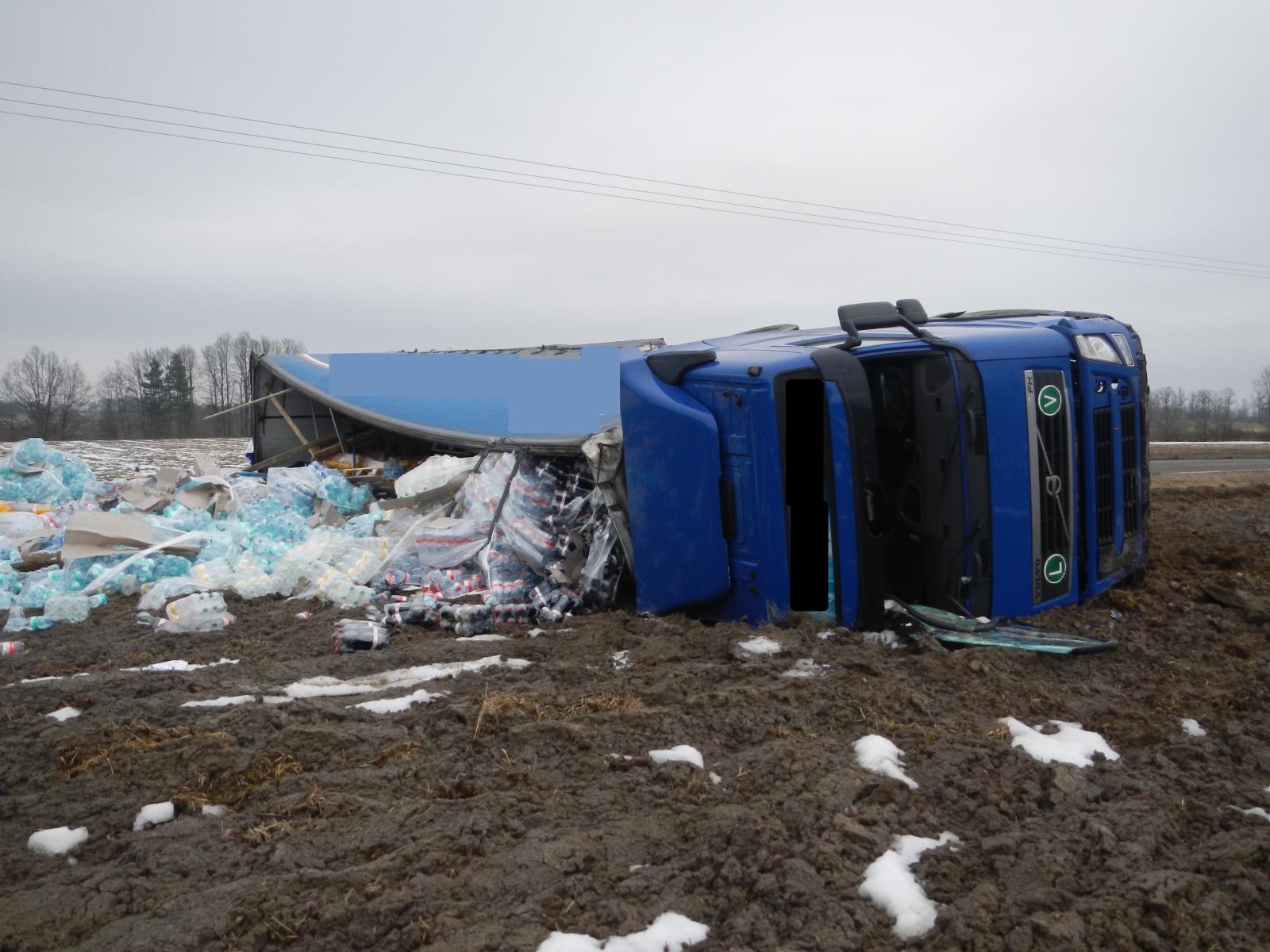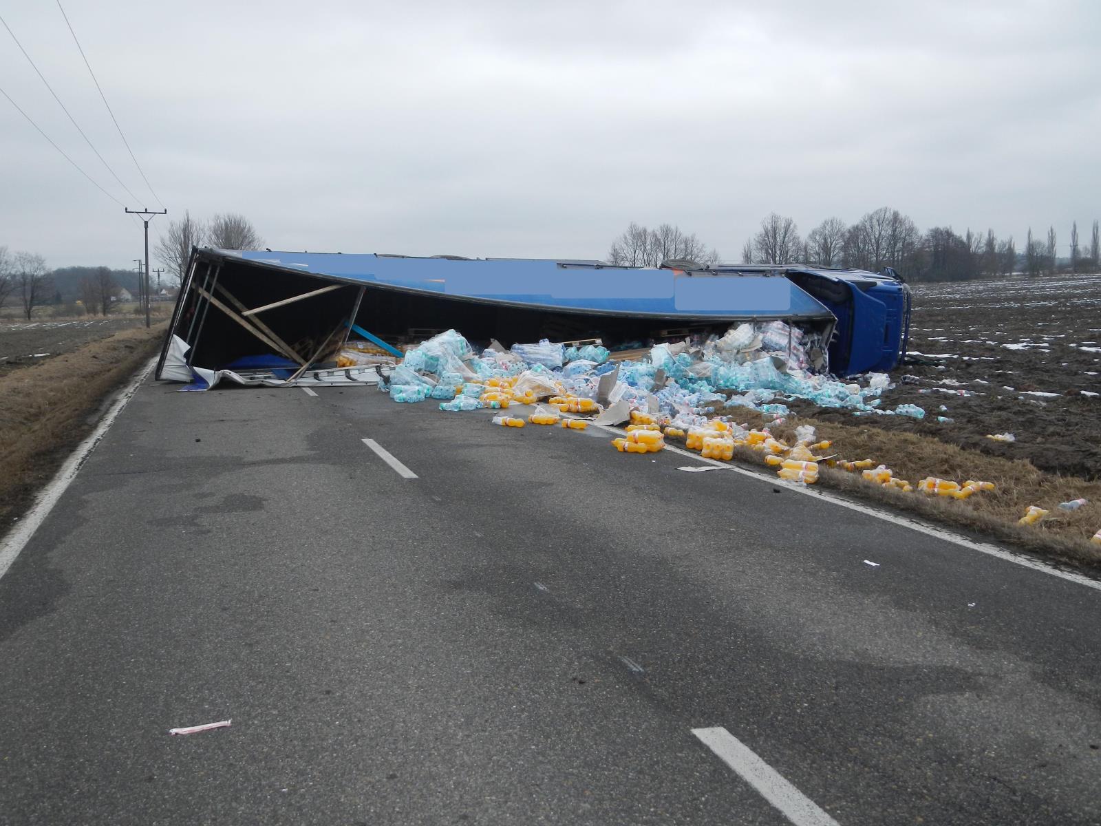 Havarovaný kamión převážející náklad limonád v plastových láhvích blokoval dnes  20. Února 2017 v dopoledních hodinách silnici u Žimutic, části obce Sobětice.