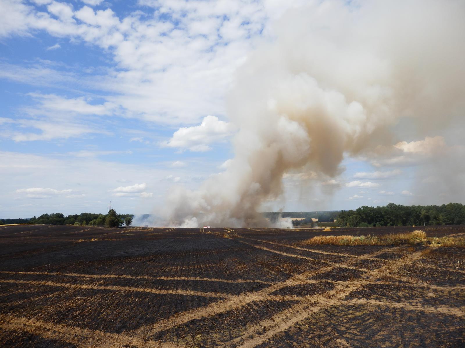 Po průzkumu na místě požáru velitel zásahu podal zprávu, že požár zasáhnul 22 hektarů pole se vzrostlým ječmenem. Na poli v době vzniku požáru a jeho prvotního šíření pracovalo několik kombajnů a zemědělských strojů. Všechny stihly hořící pole opustit, nikdo nebyl zraněn, žádný ze strojů požár nepoškodil.