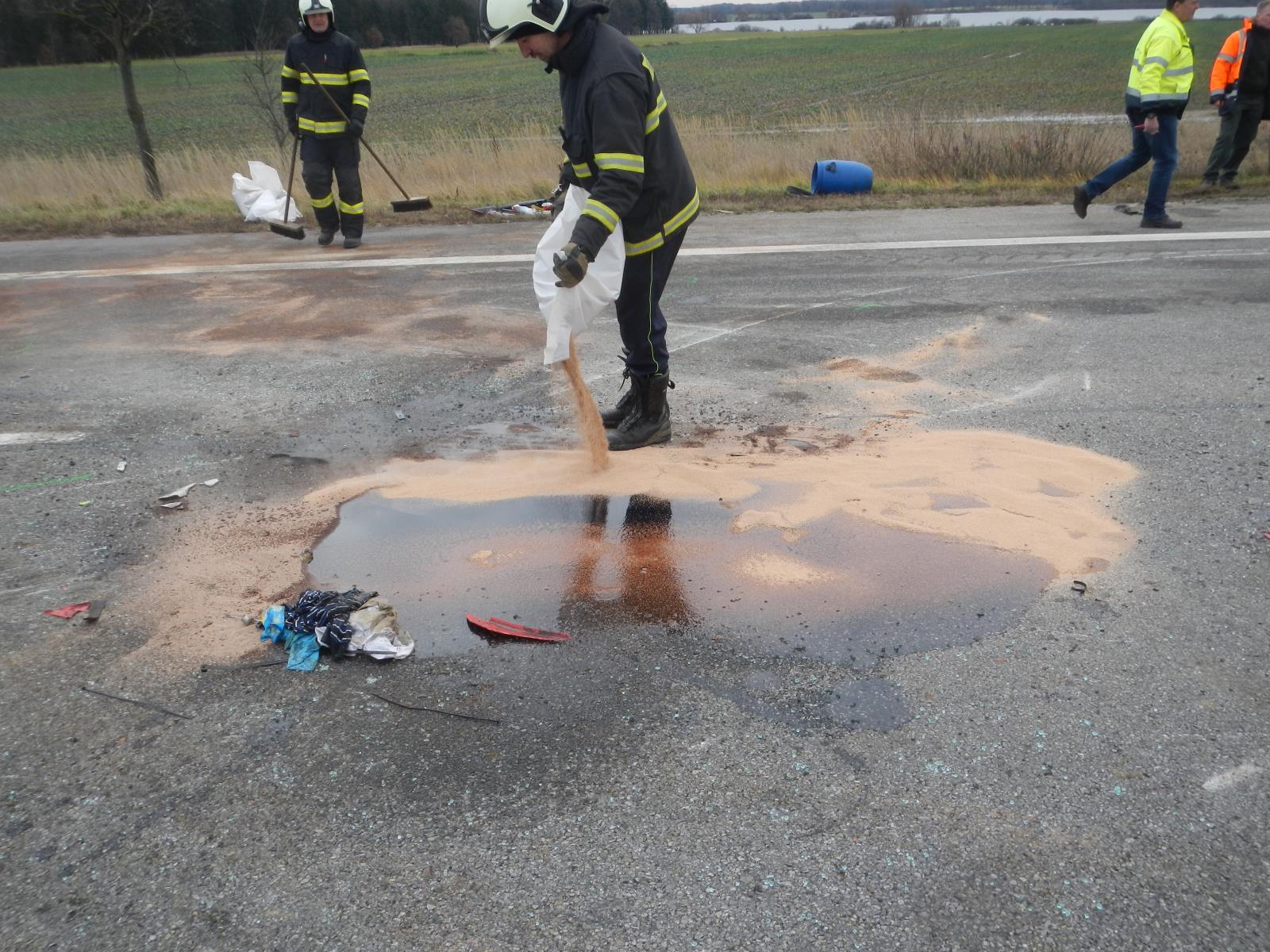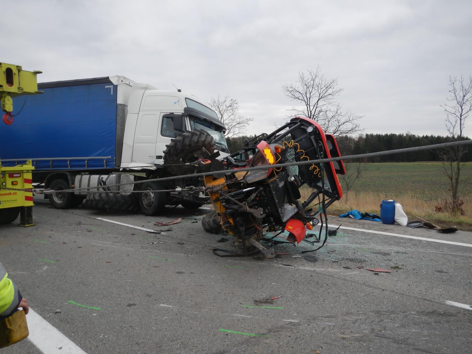 Několik minut po šesté hodině ranní, 27.11. 2017,  vyjeli profesionální hasiči ze stanice Třeboň ve svém městě na silnici I. třídy č. 34, kde došlo k dopravní nehodě nákladního automobilu a traktoru.