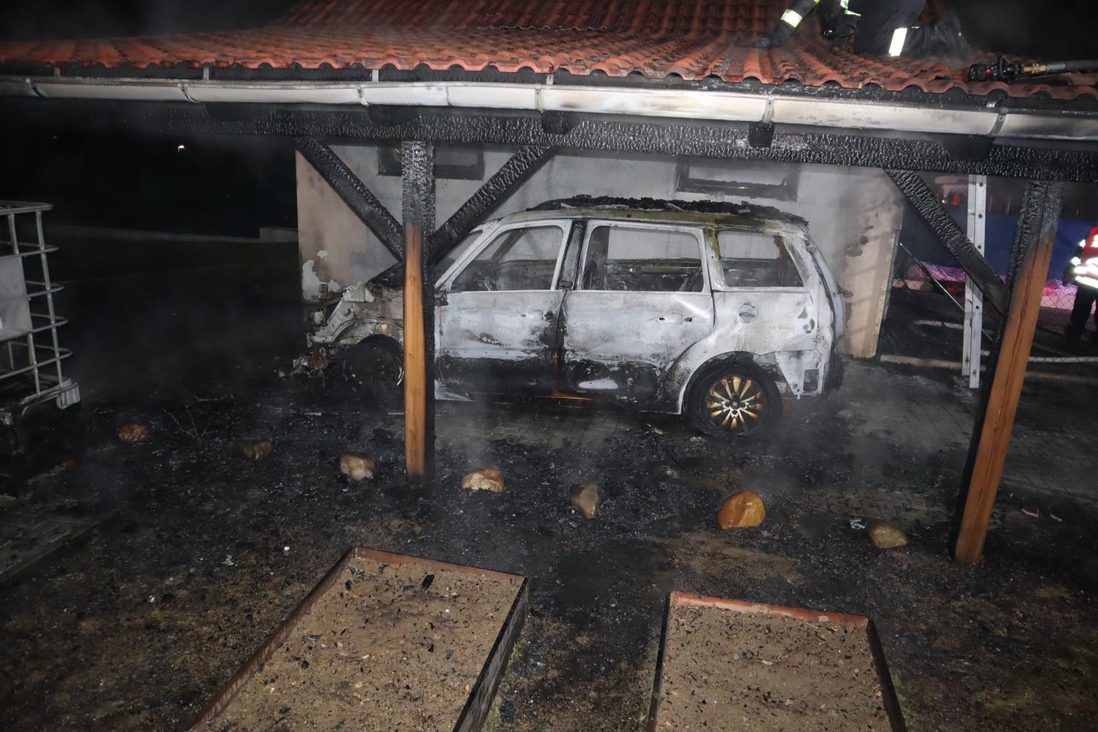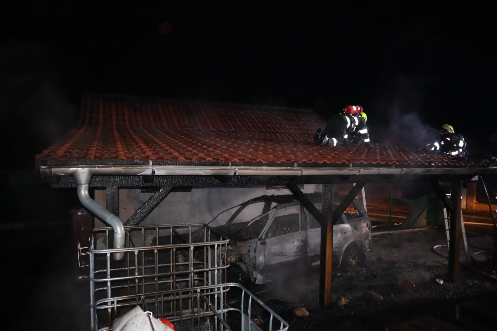 Průzkum na místě upřesnil, že hoří osobní auto značky Citroen C4. Dále že od hořícího auta chytl i dřevěný přístřešek, pod kterým auto stálo, a požár se rozšířil i na zděnou garáž.