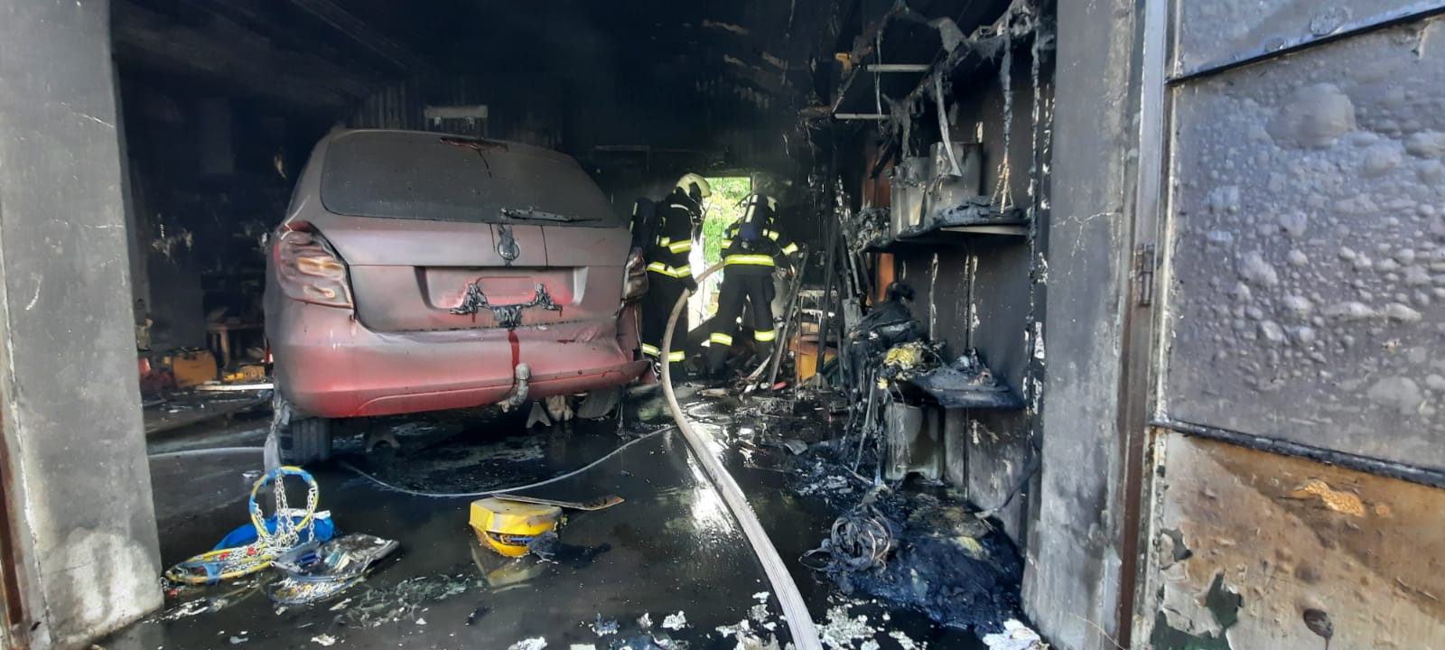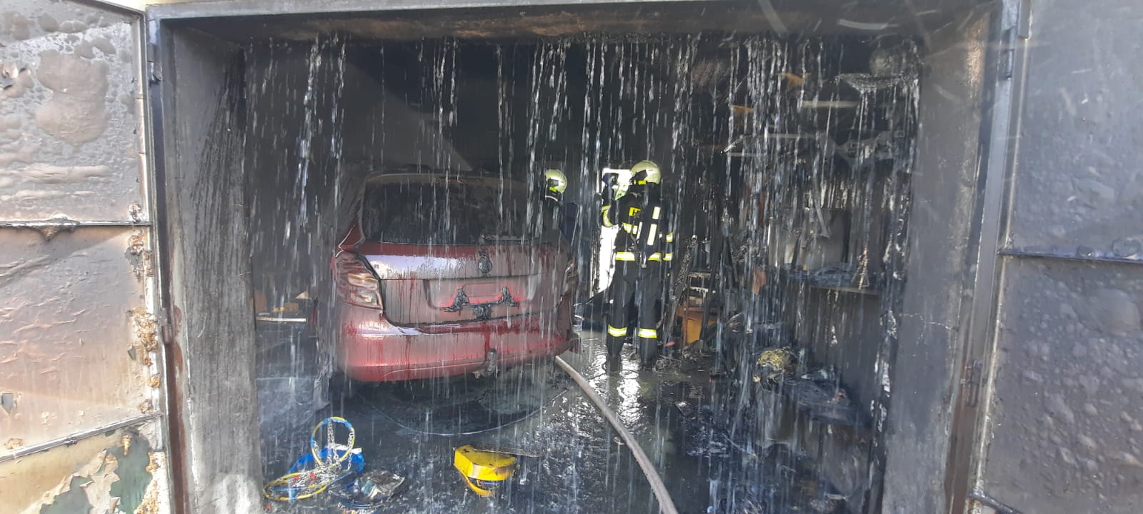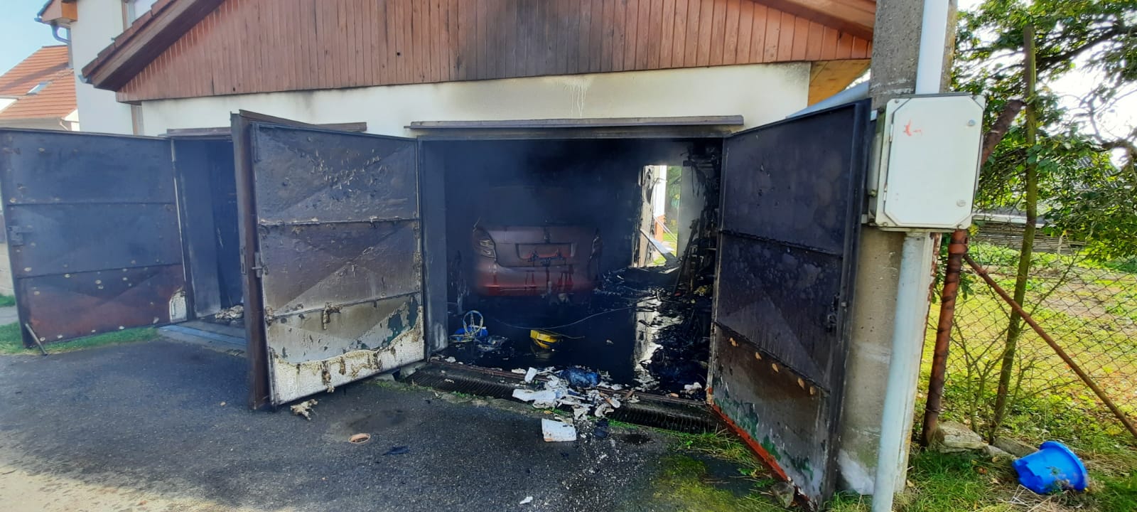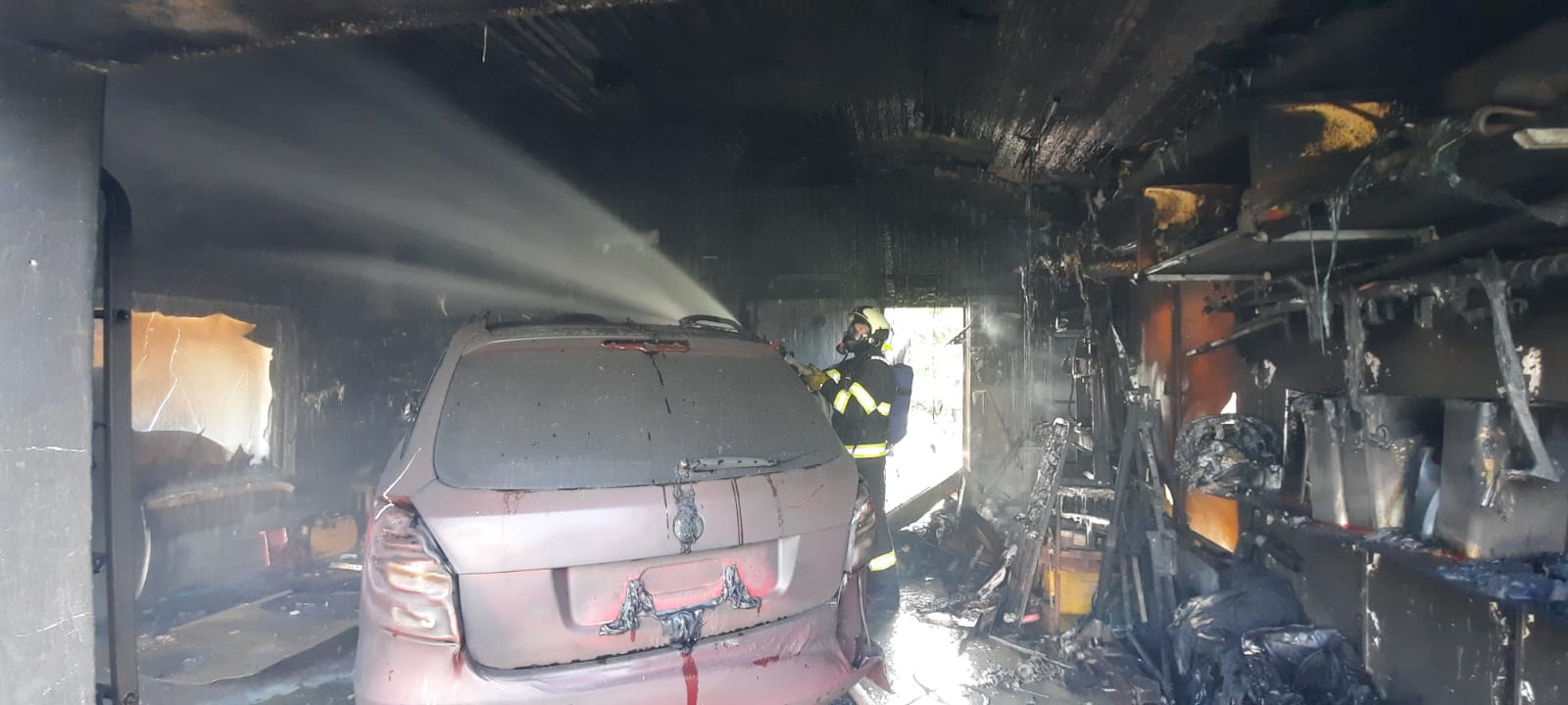 Hasiči na místě požáru průzkumem zjistili, že hoří dvojgaráž sousedící s rodinným domem. Uvnitř jedné z garáží bylo zaparkované osobní auto značky Škoda Fabia. Ještě před příjezdem jednotek se požár pokoušel hasit majitel vodou ze zahradní hadice, zároveň vypnul přívod elektrické energie jak do garáže, tak i do domu.