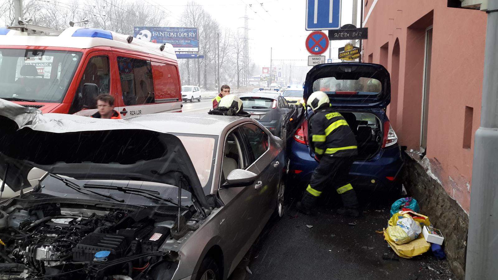 Jedno z aut zůstalo po nárazu zaklíněné mezi svodidly a domem. Jeho řidiče hasiči museli vyprostit přes páté zadní dveře. Následně ho předali zdravotníkům ZZS. Obě havarovaná auta hasiči dále zajistili protipožárním opatřením. Nehodu si poté převzala Policie ČR k šetření. Českobudějovická jednotka zásah po 16. hodině ukončila. Na Pražskou třídu pak po 18. hodině vyjeli profesionální hasiči ze stanice Suché Vrbné, kteří silnici v místě nehody uklidili.