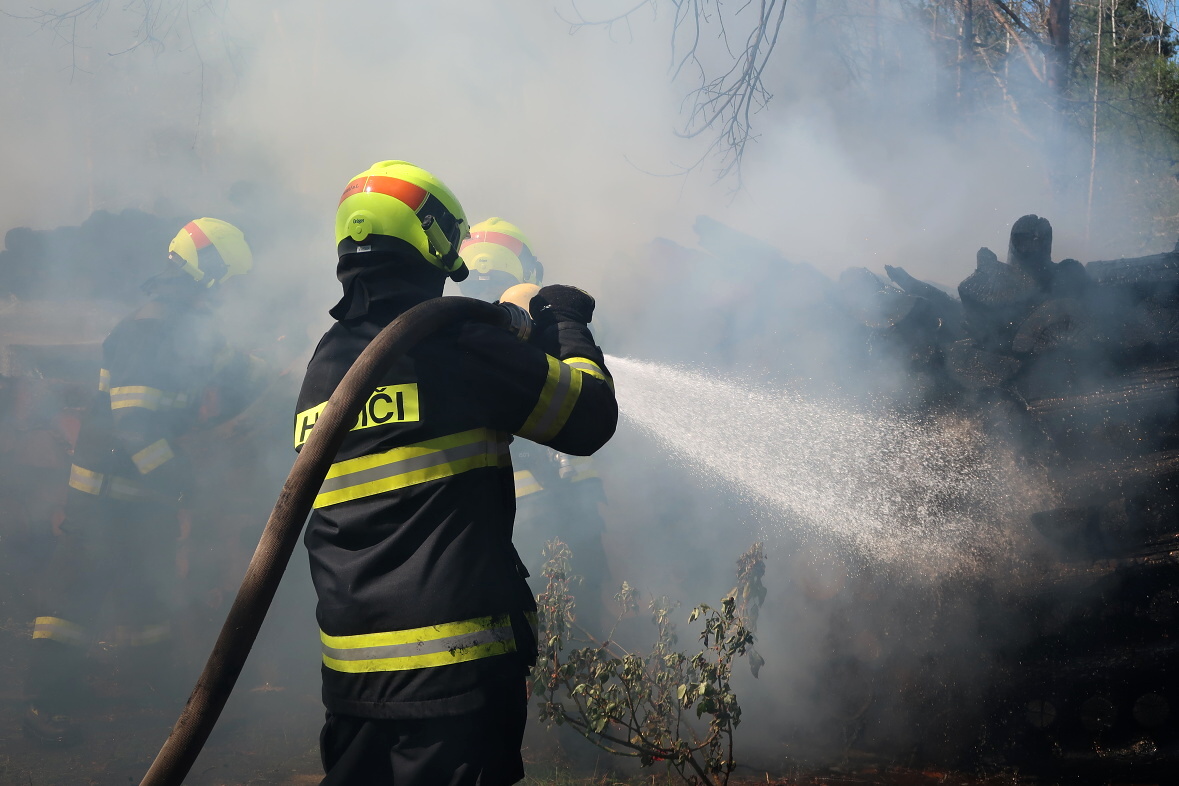Statisícová škoda u požáru dřeva a chaty ve Vlkově