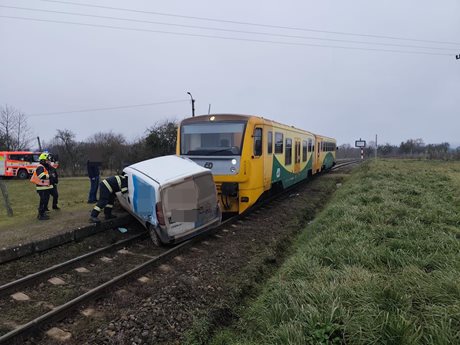 Střet auta s vlakem skončil zázrakem: Vážně vypadající nehoda bez zranění