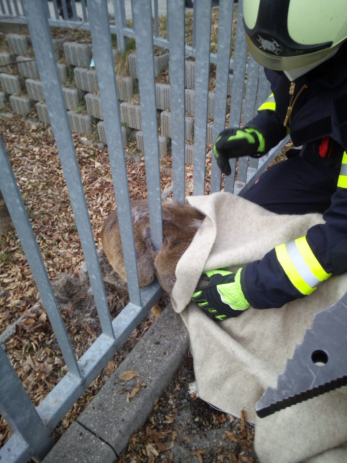 Jednotka použila hydraulické zařízení a srnku opatrně z plotu vyprostila. A jelikož srnka neměla žádné viditelné zranění, vypustili ji hasiči do lesa.