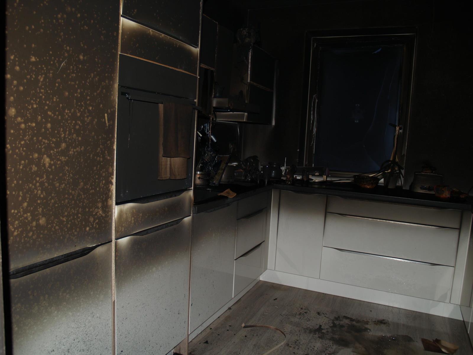 Na místě hasiči zjistili, že hoří v nedávno postaveném rodinném domě. Ohnisko požáru našli u jídelního stolu umístěného v obývacím pokoji spojeném s kuchyní. Stůl se šesti židlemi byl shořelý kompletně, požár ničil také zánovní kuchyňskou linku, okna a další vybavení místností. Zasahující jednotky dostaly požár pod kontrolu okolo půl šesté. Podařilo se jim zabránit rozšíření požáru do podkroví. To bylo před požárem zcela uchráněno. Úplnou likvidaci požáru včetně odvětrání velitel zásahu nahlásil v 6:41 hodin.