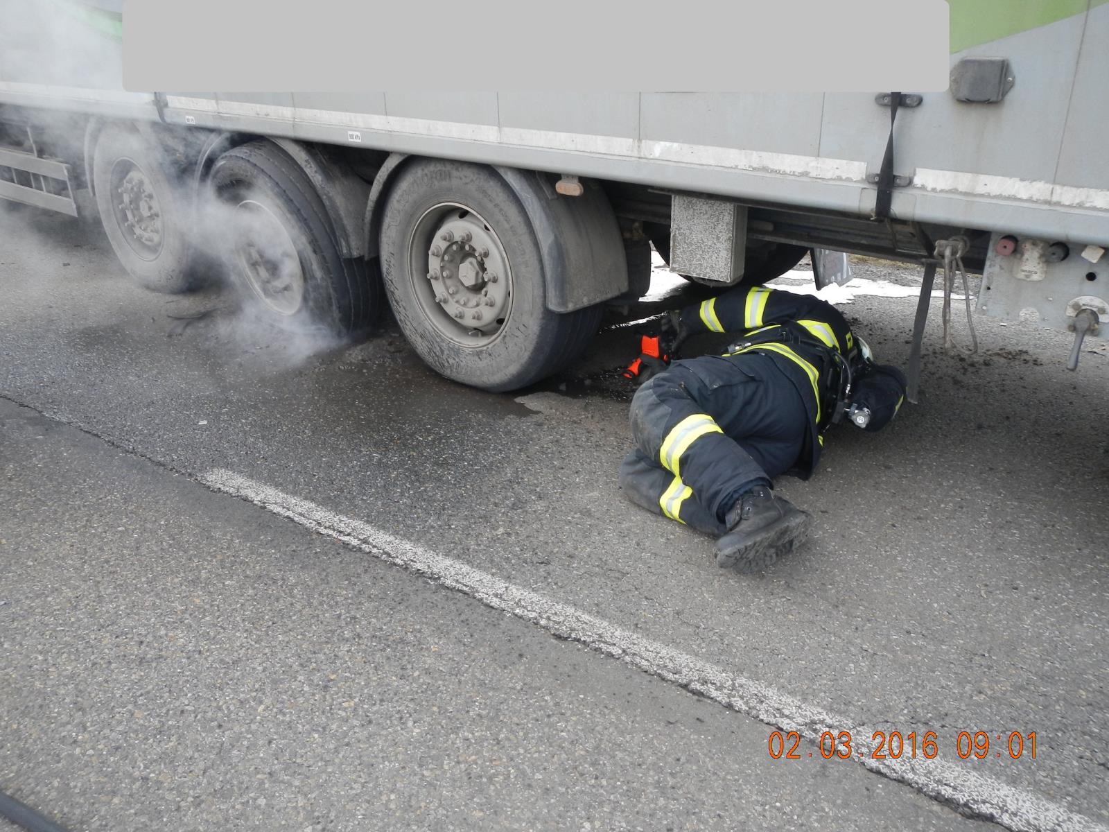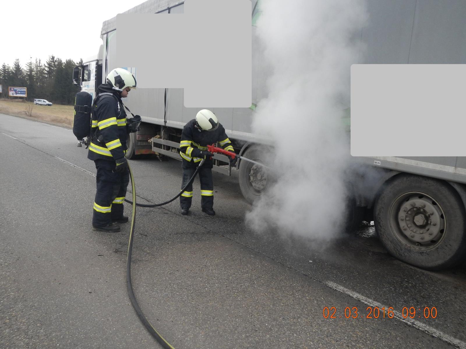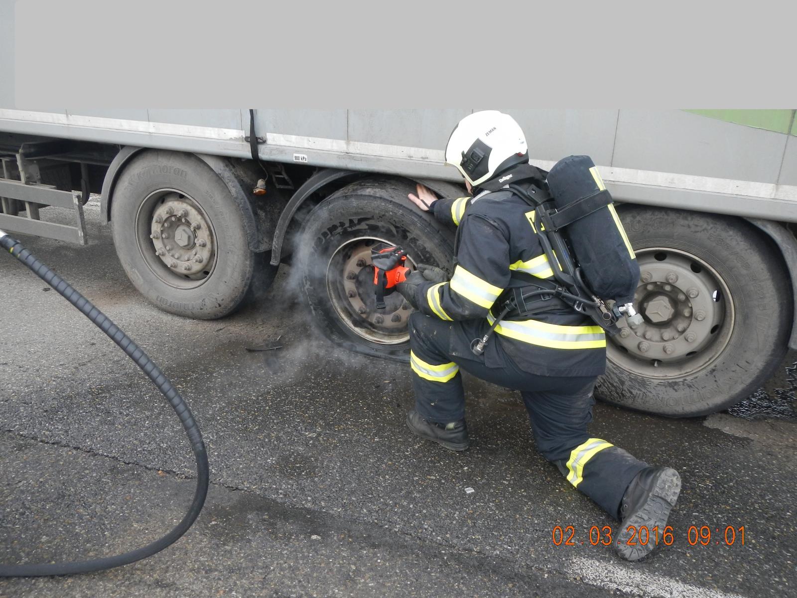 Táborští hasiči ochlazovali přehřáté pneumatiky kamiónu
