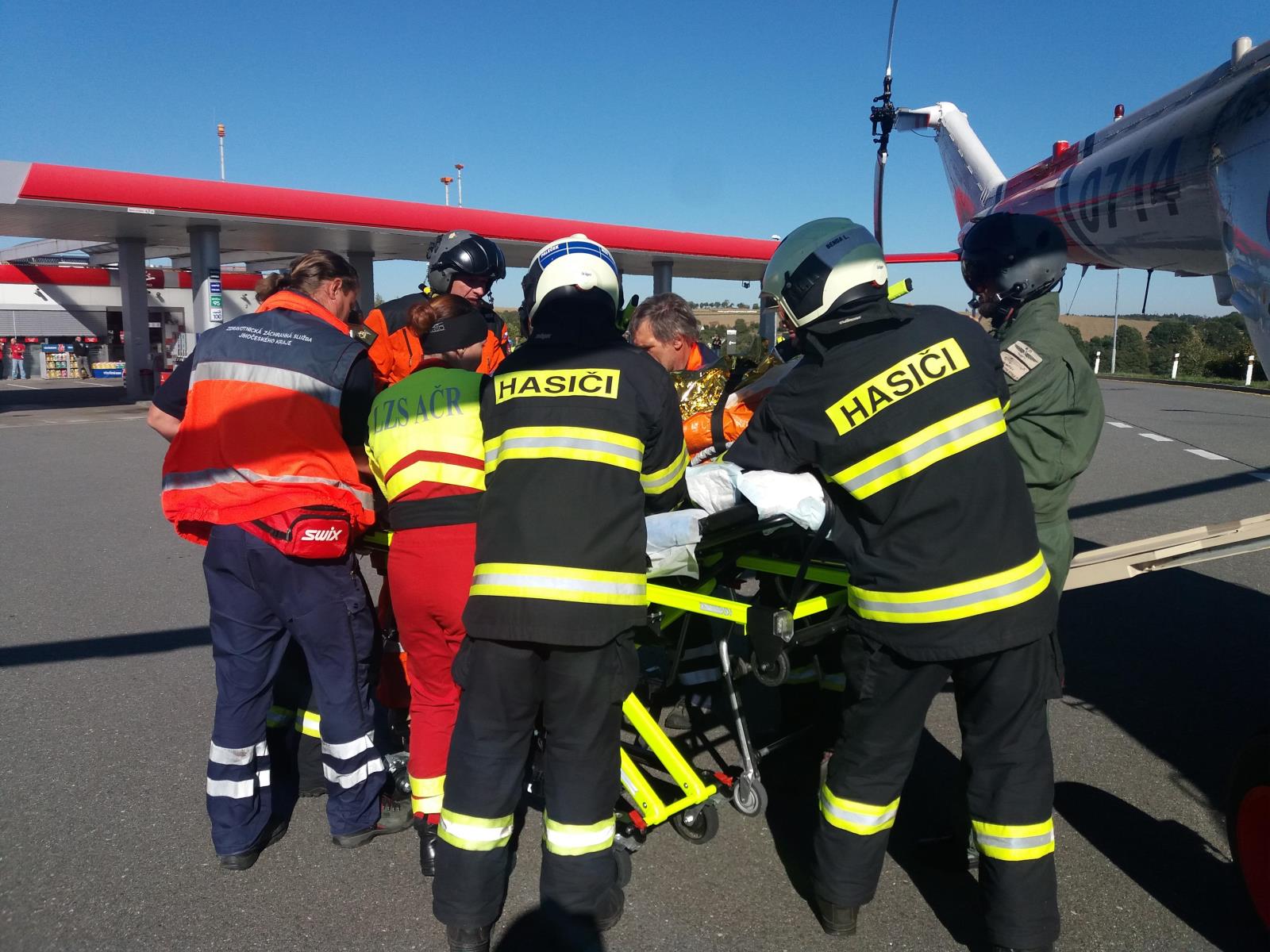Současně s vyproštěním hasiči zajistili všechny vozy protipožárním opatřením a sorbentem zasypali provozní kapaliny vyteklé z vozu Passat. Votičtí hasiči mezitím u blízké čerpací stanice vytvořili prostor pro přistání vrtulníku LZS.