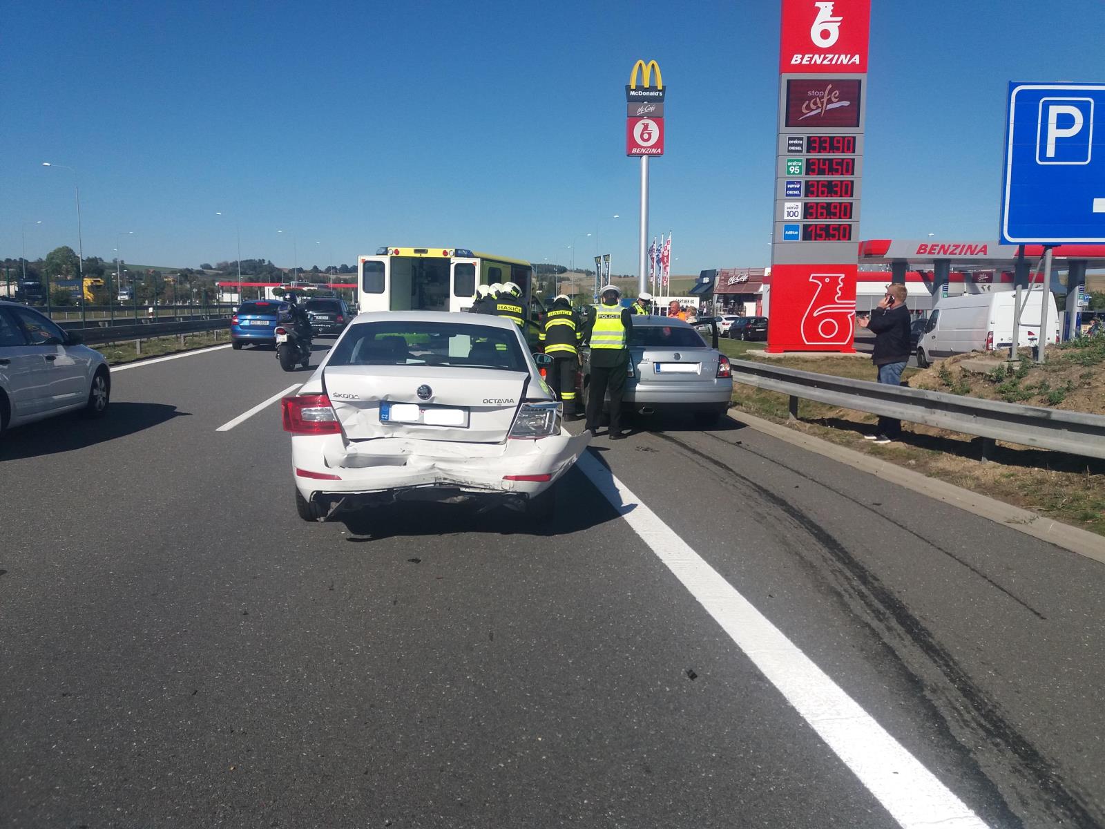 Zároveň byl vyhlášen poplach pro jednotku SDH obce Chotoviny, ze Středočeského kraje k nehodě vyjeli dobrovolní hasiči obce Votice. Průzkum na místě nehody ukázal, že se jedná o srážku tří osobních automobilů továrních značek VW Passat, Škoda Octavia a Volvo XC40. V okamžiku příjezdu hasičů byla všechna havarovaná auta v pravém jízdním pruhu, levý zůstal průjezdný. Osádka vozu Volvo vyvázla bez zranění.