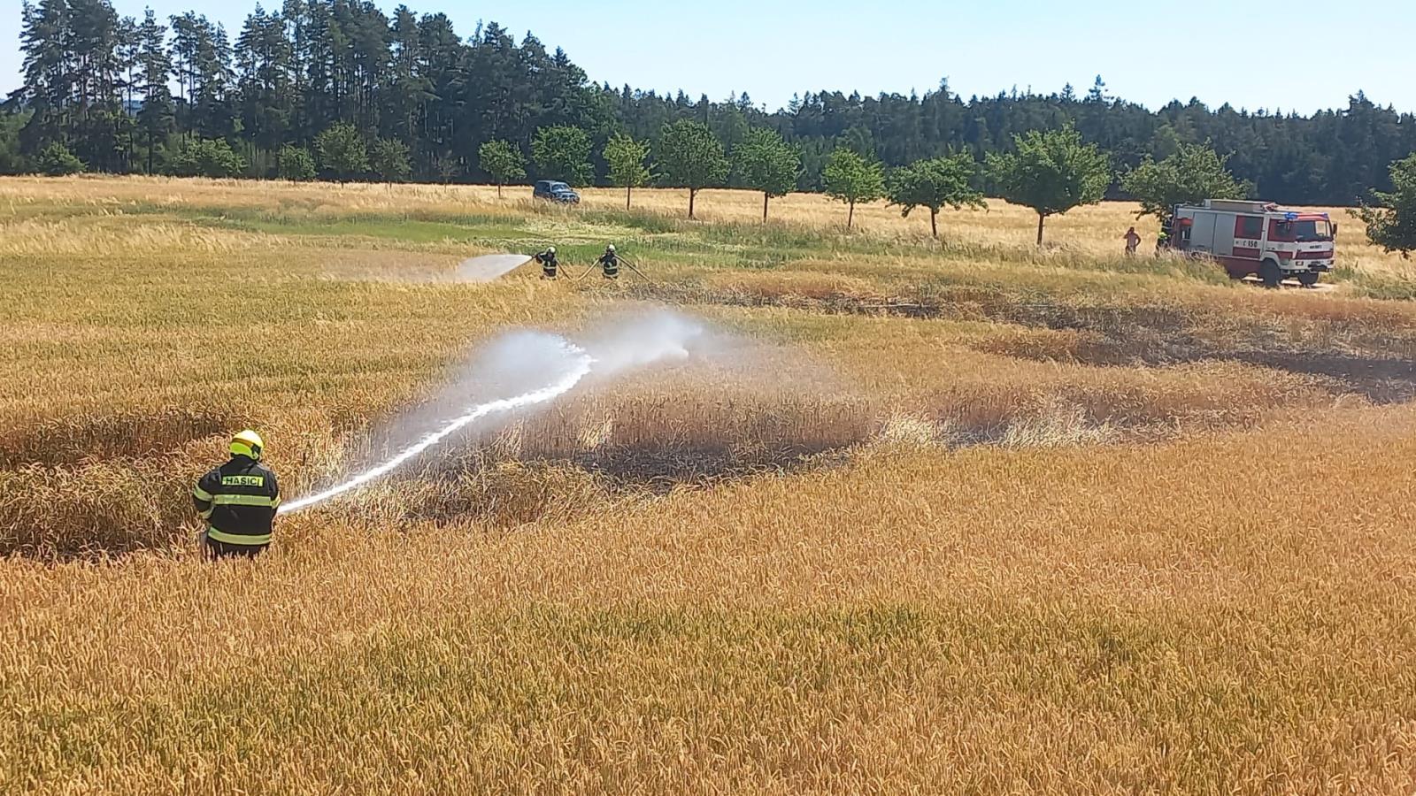 12:40 - Sedlečko u Soběslavě - požár vzrostlého obilí na ploše 100 x 100 metrů - zasahovali profesionální hasiči ze stanice Soběslav a dobrovolní hasiči obcí Přehořov a Tučapy,