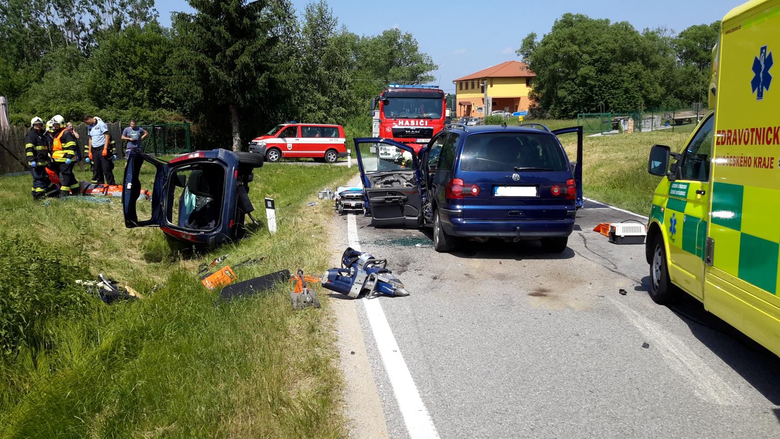 V havarovaných vozech zůstaly zaklíněné dvě osoby, třetí zraněná osoba byla mimo havarované vozy. Zasahující hasiči okamžitě...