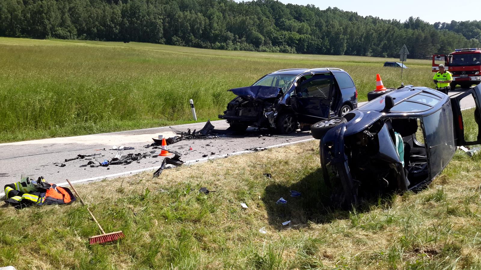 V havarovaných vozech zůstaly zaklíněné dvě osoby, třetí zraněná osoba byla mimo havarované vozy. Zasahující hasiči okamžitě zahájili vyprošťování, k němuž museli použít hydraulické vyprošťovací zařízení. Ve spolupráci se zdravotníky ZZS transportovaly obě vyproštěné osoby do vrtulníku LZS. Třetí zraněná osoba byla do nemocnice převezena sanitkou. Následovalo nezbytné zajištění havarovaných aut proti vzniku požáru a kontrola úniku provozních kapalin. Po odvezení všech třech zraněných a zadokumentování nehody Policií ČR hasiči dokončili úklid vozovky.