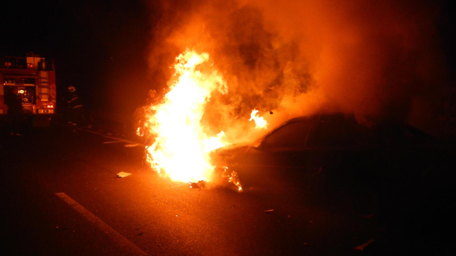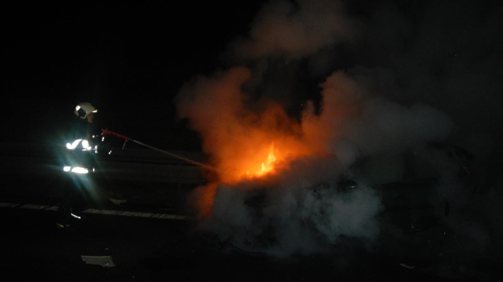 Informaci o požáru přijali operátoři na tísňové lince 112 v 19:33 hodin. Požár byl ohlášen na křižovatce zvané Nová Hospoda. Hasiči průzkumem zjistili, že zde hoří osobní auto tovární značky Opel Astra. Řidiči se podařilo z hořícího auta utéct, nemáme informaci, že by byl zraněn. Komplikace zásahu byla v tom, že auto hořelo v těsné blízkosti mostního tunelu. Kouř z požáru okamžitě snížil viditelnost v tunelu a do hořícího osobního auta pak ještě následně narazil kamión. Zasahující hasiči na uhašení požáru nasadili vysokotlaký proud. Díky jejich rychlému zásahu, který trval řádově pouhé minuty, se podařilo zabránit rozšíření požáru. Po úplné likvidaci požáru jednotka předala událost Policii ČR k šetření a jedna z cisteren a rychlý zásahový automobil se vrátily zpět na základnu. Na místě zůstala osádka druhé cisterny, která po naložení shořelého vraku na vůz odtahové služby provedla úklid komunikace.