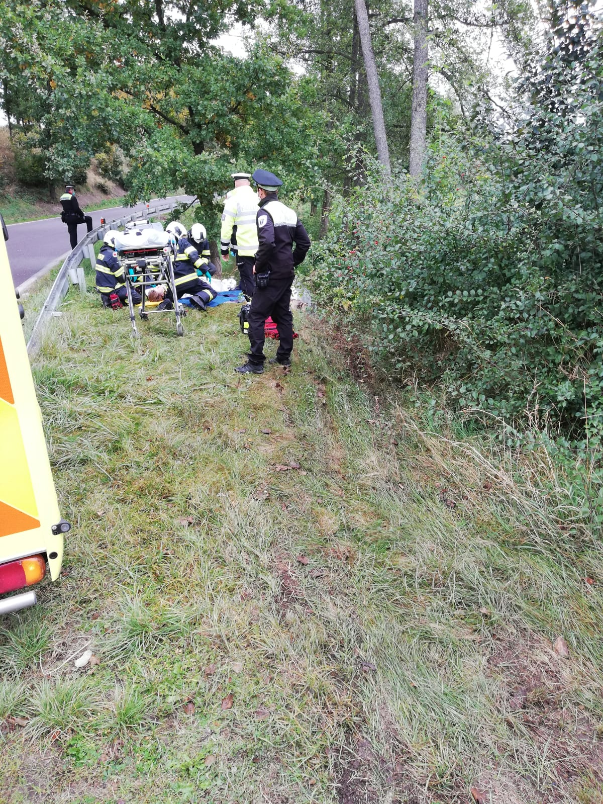 Dnes (6. října) minutu po deváté hodině dopolední přijali hasiči informaci o dopravní nehodě motorkáře, který havaroval u Velkého Pěčína.
