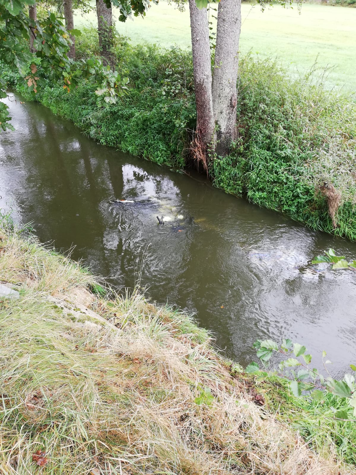 U Velkého Pěčína skončil motorkář i se svoji motorkou v potoce