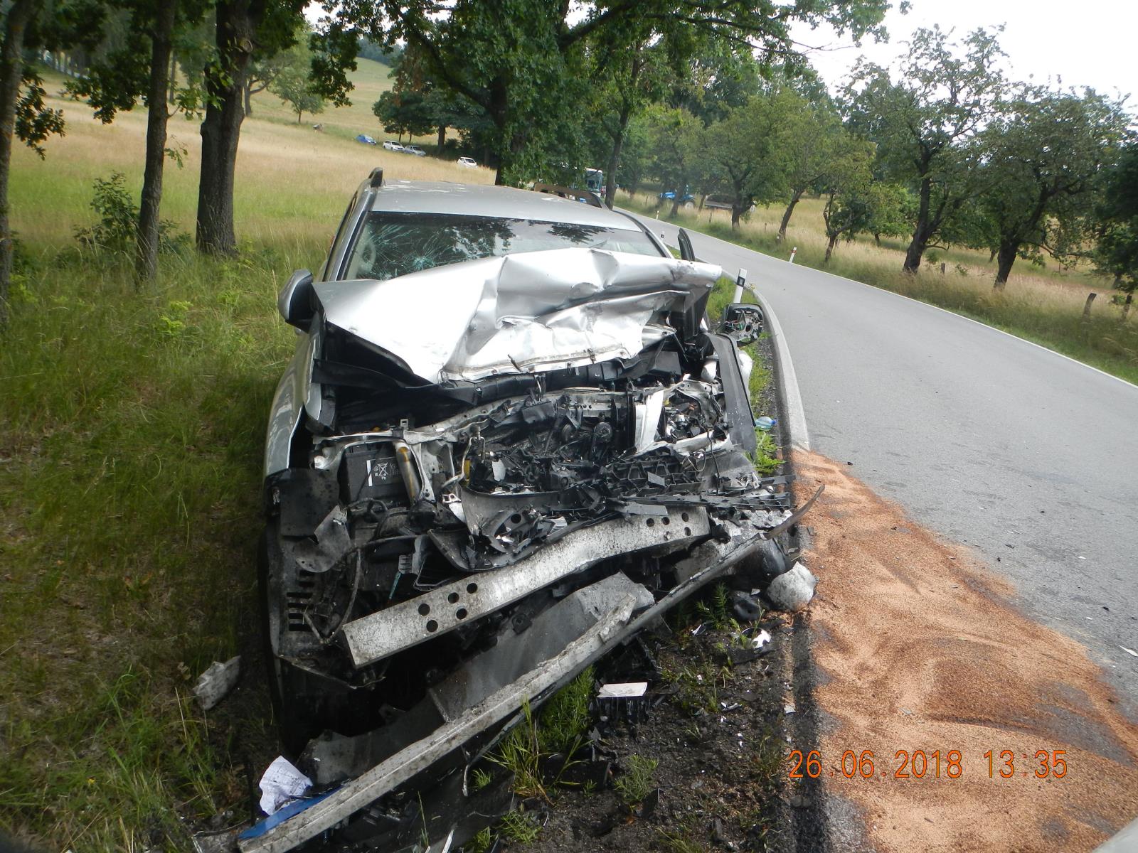Vážná dopravní nehoda se stala dnes ,26. června 2018,  po poledni u Nových Hradů, sídelní jednotky Hlinov.