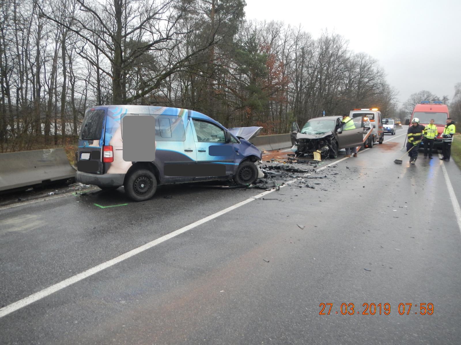 Průzkum na místě potvrdil původní ohlášení na tísňovou linku, a to že se jedná o střet dvou osobních automobilů značek VW Caddy a Renault Megane.