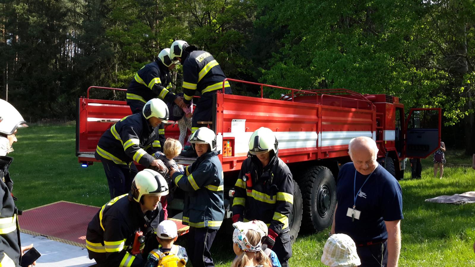 Na stanici v Českých Budějovicích byla odvezena skupinka dětí z mateřské školy. Děti dostali najíst a napít v multimediální učebně, která je připravena pro preventivně-výchovnou činnost. Je tedy kromě jiného vybavena i hračkami s hasičskou tématikou. Hračky a především naprosto skvělý a profesionální přístup psychologů Policie ČR a členů týmu posttraumatické péče HZS Jihočeského kraje dětem pomohly jejich zážitek z nehody zpracovat. Děti si postupně vyzvedávali jejich rodiče. Věříme, že z dnešního dne jim v paměti zůstane pouze "ta lepší" vzpomínka.