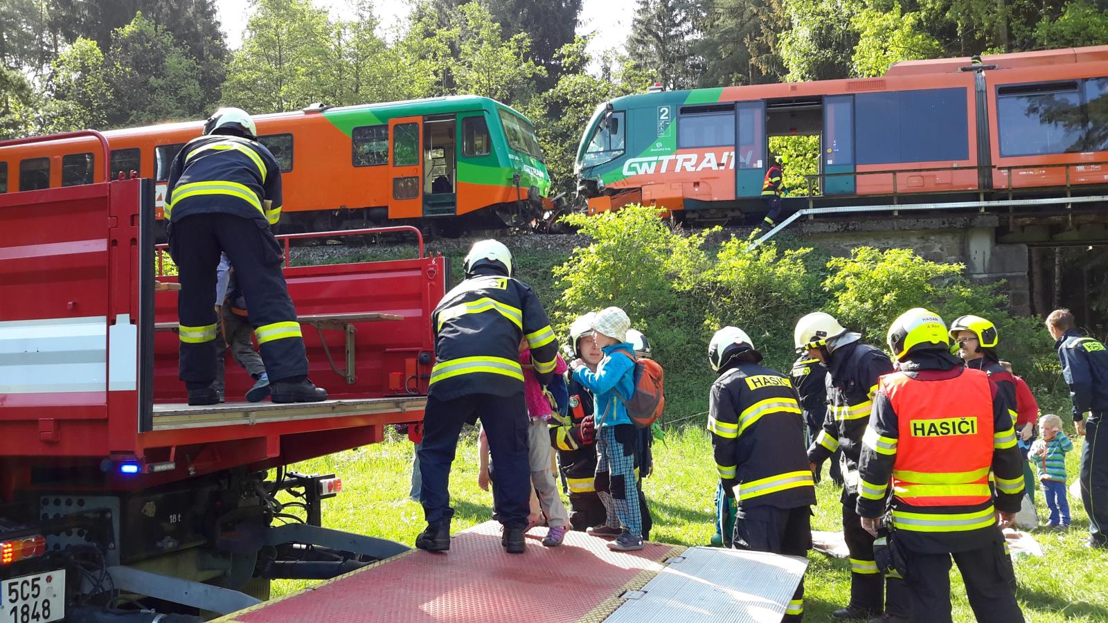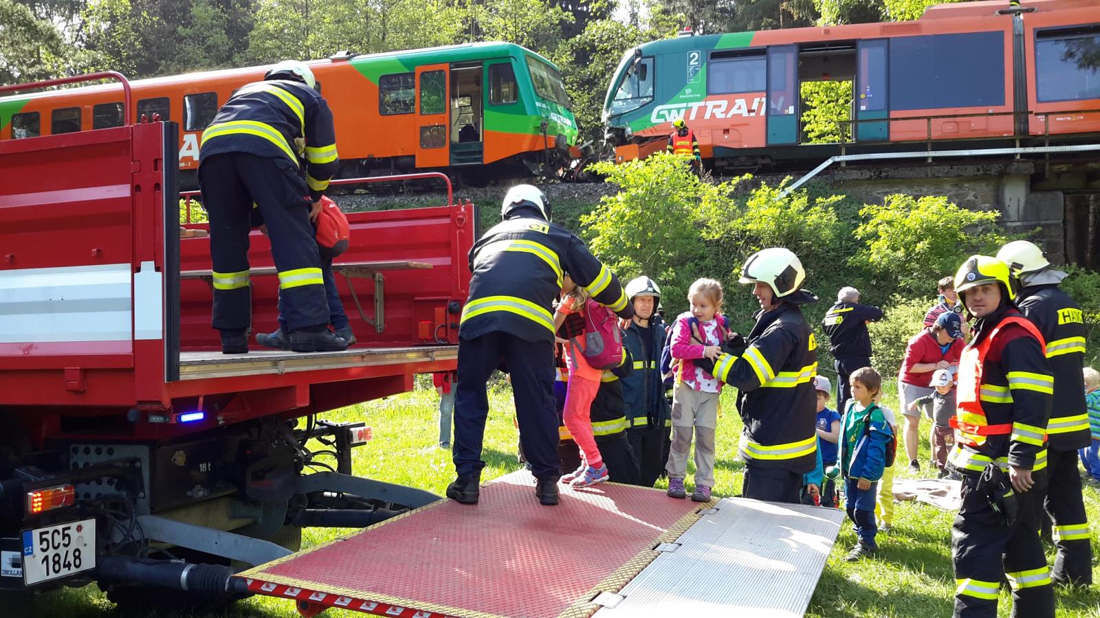 Jednalo se o čelní střet dvou osobních vlaků, které se potkaly na jedné koleji. V obou soupravách cestovalo dohromady 50 osob, 14 z nich utrpělo zranění. Nehoda se obešla bez vyproštění. Zásah hasičských jednotek spočíval v asistenci zdravotníkům ZZS při ošetření zraněných, při jejich třídění a především při jejich evakuaci z vlaků ven. Složitost zásahu způsoboval obtížný terén, ale vzhledem k dostatečnému množství hasičů byli všichni cestující, ať už zranění či ne, bezpečně evakuováni. Poslední osobu z vlaku hasiči evakuovali přibližně do 45 minut od ohlášení nehody.