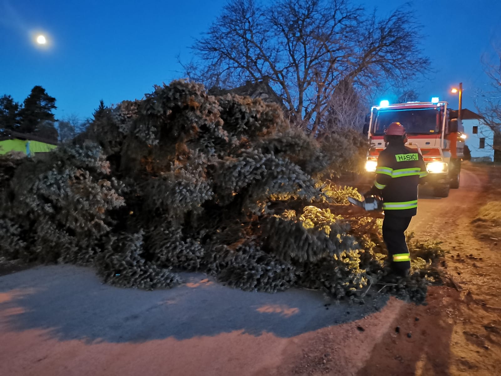 Jindřichohradecko: celkem 88 událostí, většinou jde o stromy, uvolněné střechy jsme zajišťovali například ve Vídeňské ulici v JIndřichově Hradci, v Třeboni na Masarykově náměstí, ve Slavonicích, Českých Velenicích, Studené, části obce Skrýchov nebo v Nové Bystřici. Hasiči řešili padající střešní tašky na kostele v Husově ulici v Třeboni nebo uvolněný komín rodinného domu v ulici Na Kopečku v Třeboni.
