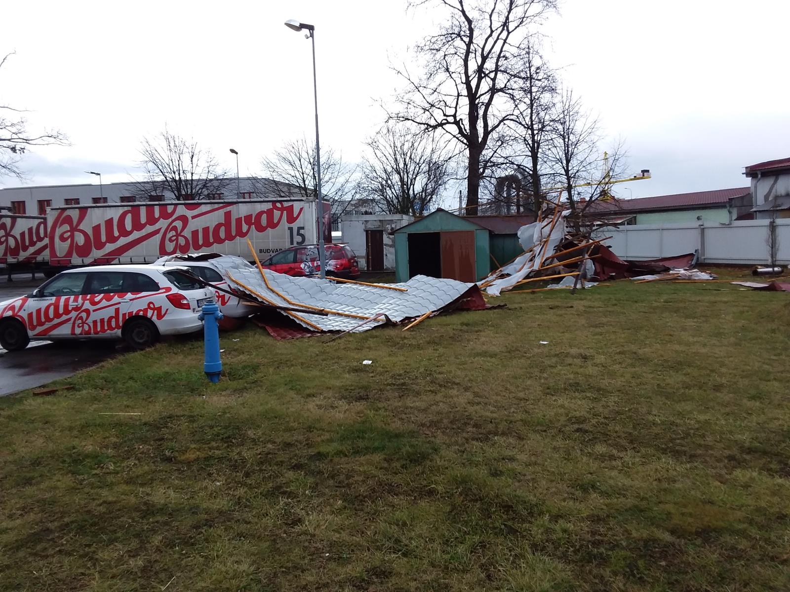 Českobudějovicko: celkem 151 událostí, z toho kromě dalších událostí uvedených v předcházející zprávě k 8:20 hodinám jsme zasahovali nebo zasahujeme u uvolněných částí střech v Českých Budějovicích v ulicích Strádova, Dobrovodská, Pekárenská, Plzeňská, Novohradská, Ledenická, Lipenská, Jaselská, dále také na obchodním centru IGY, kostele v ulici Emy Destinové v Českých Budějovicích, zajišťujeme střechy v Korostenské ulici v Homolích, v Dasným nebo Lišově, řešíme srolovanou střechu garáže na Žižkově třídě v Českých Budějovicích, střechu školky v Hluboké nad Vltavou, uvolněný billboard, který narazil do domu na Lidické třídě v Českých Budějovicích, další uvolněné reklamy v Čechově ulici nebo v Plzeňské ulici v Českých Budějovicích.