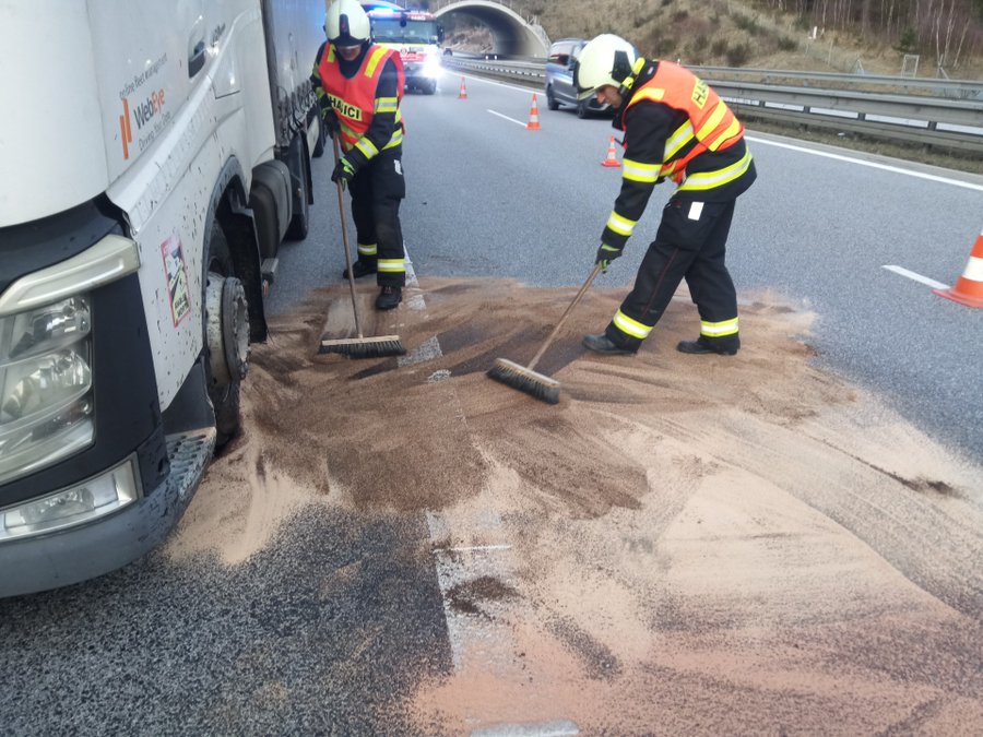 Dopravní komplikace vznikla po úniku provozních kapalin z odstaveného kamionu. Hasiči museli rychle zasáhnout, aby zabránili nehodám a zajistili bezpečnost provozu. Zásah probíhal za plného provozu a vyžadoval maximální opatrnost.