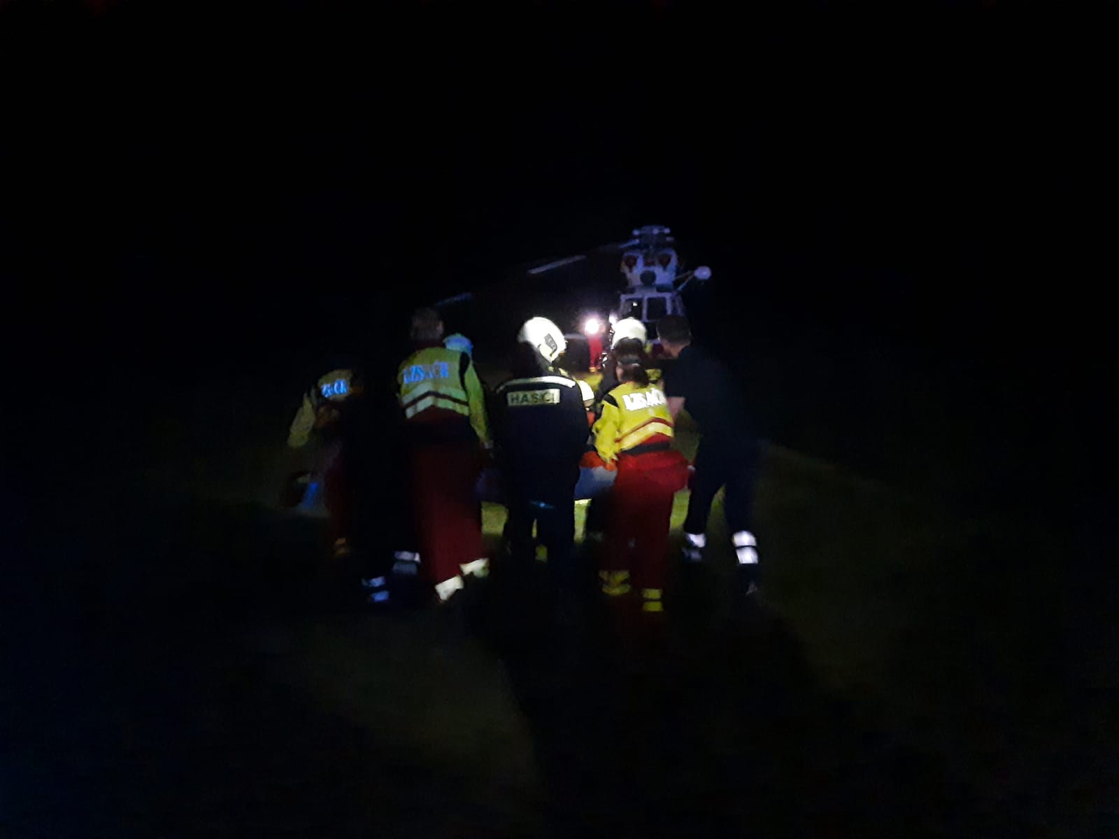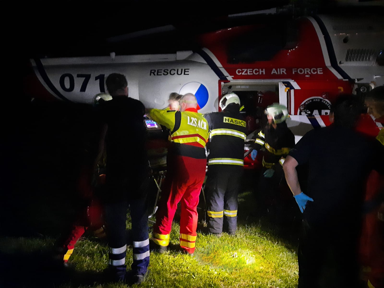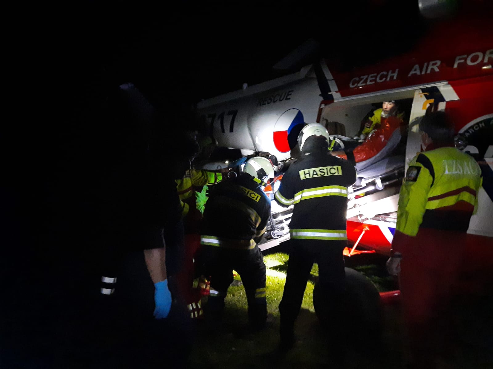 V Chýnově hasiči transportovali zraněného cyklistu do vrtulníku LZS