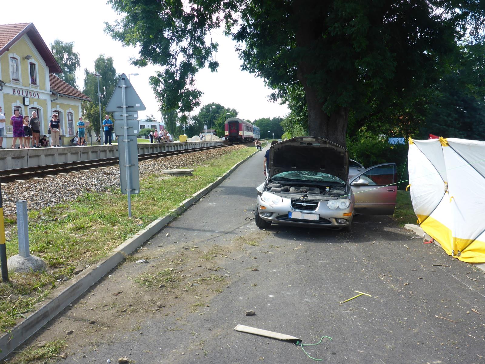 Pátek (30. července) krátce před půl třetí odpolední přijali hasiči na tísňovou linku oznámení o nehodě, která se stala v Holubově na železničním přejezdu P1584.