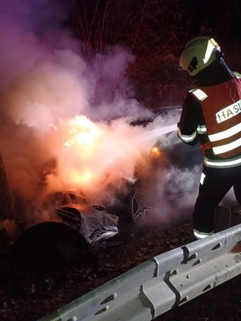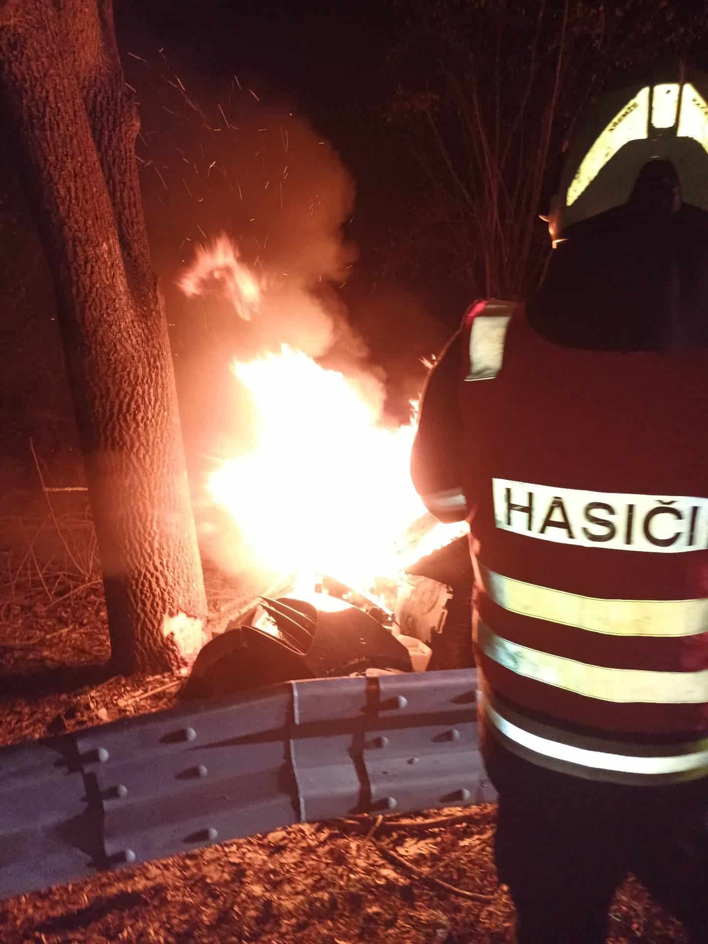 Po příjezdu jednotek bylo zjištěno, že vozidlo po havárii začalo hořet v plném rozsahu.