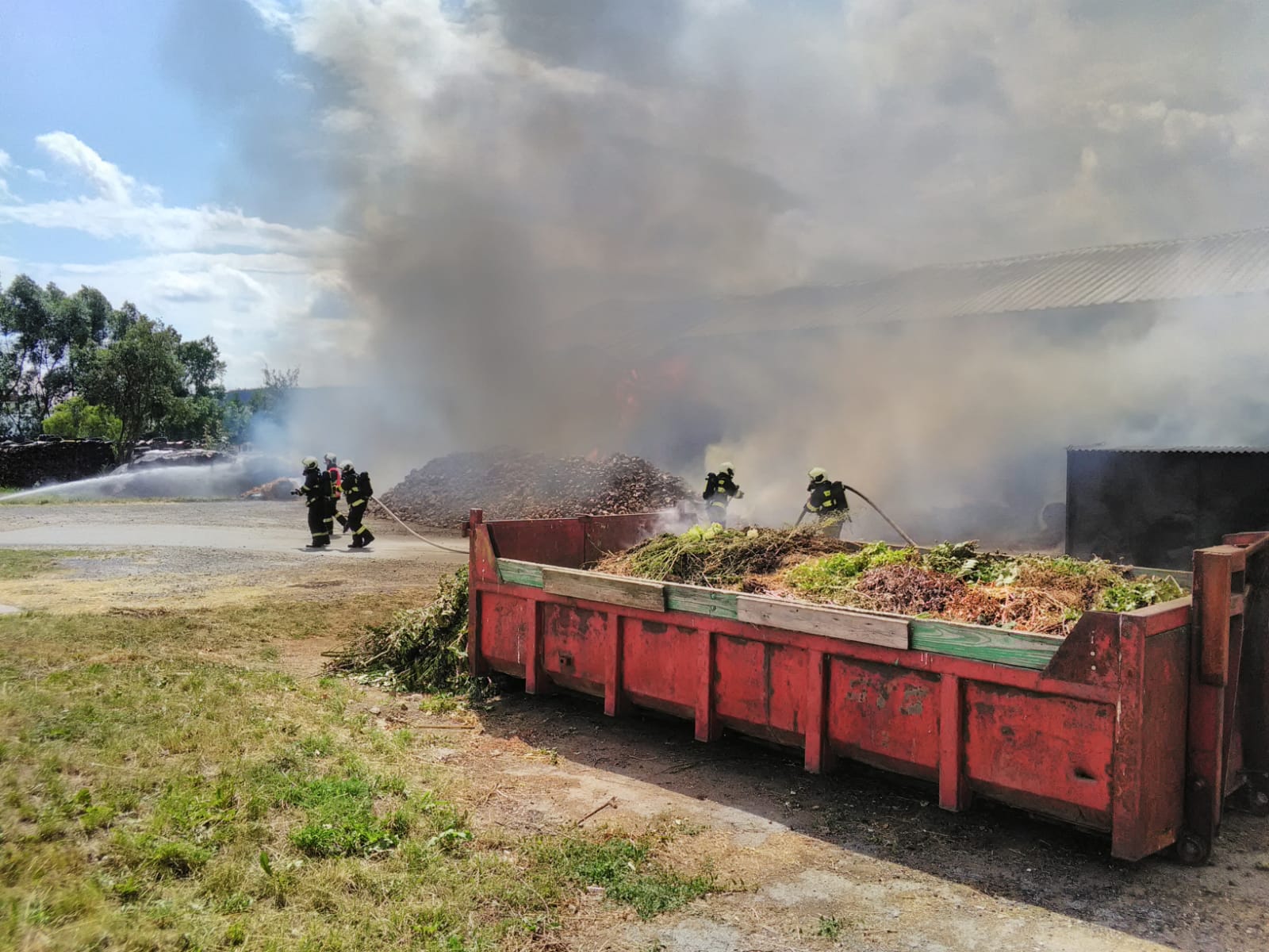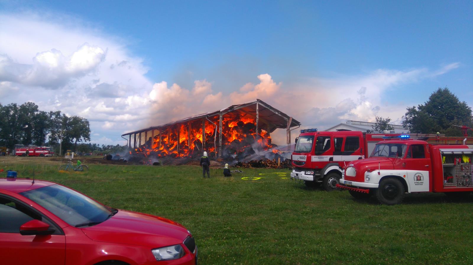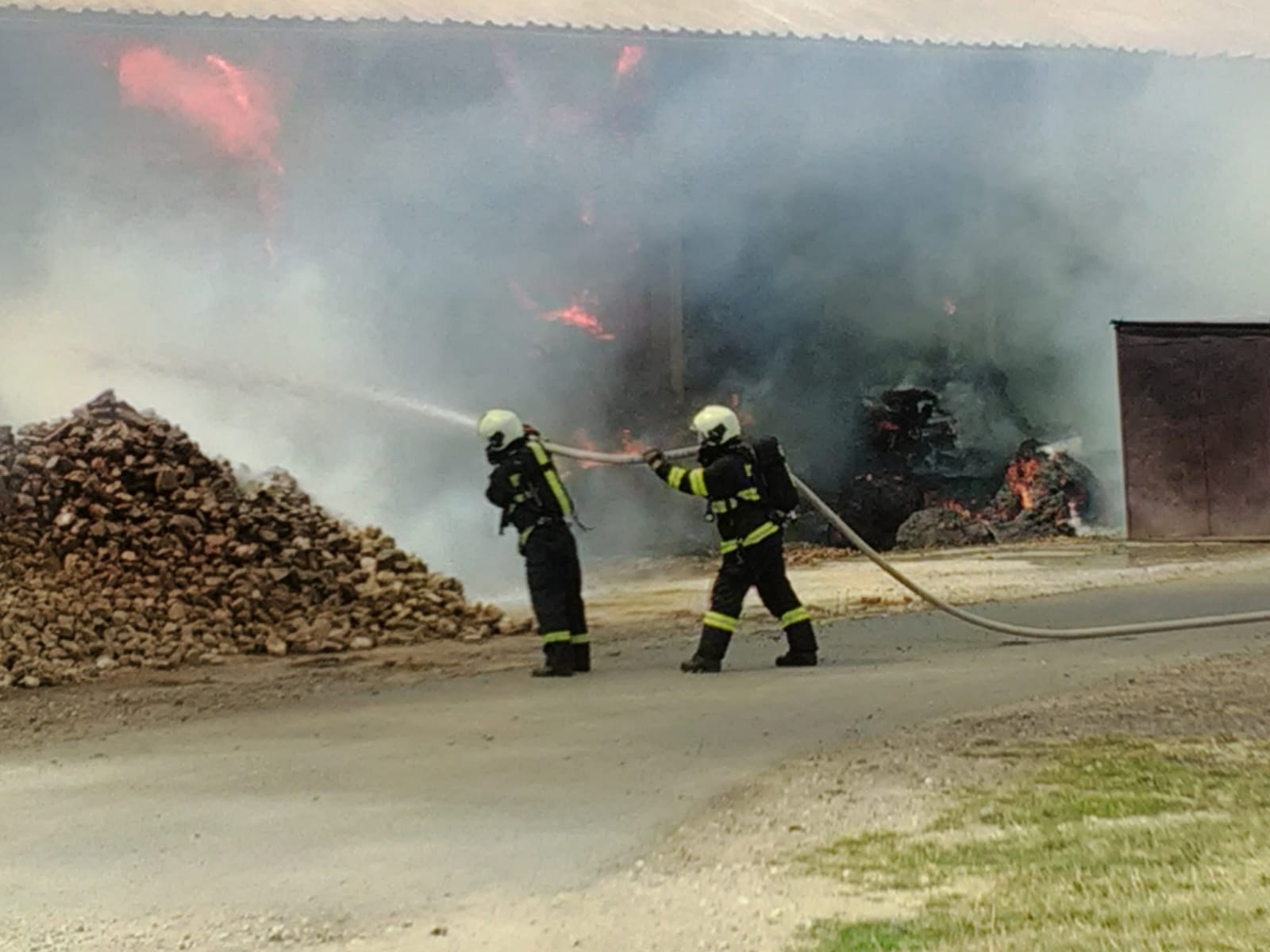 Ve Střelských Hošticích hořel sklad slámy. Požárem bylo zasaženo všech 1300 balíků uskladněných uvnitř. Ocelový sklad o půdorysu 51 x 20 metrů je samostatně stojícím objektem, nehrozilo přímé nebezpečí rozšíření požár na další budovy či porost. Zároveň uvnitř skladu nebyla žádná osoba, zvířata nebo stroje či technika.