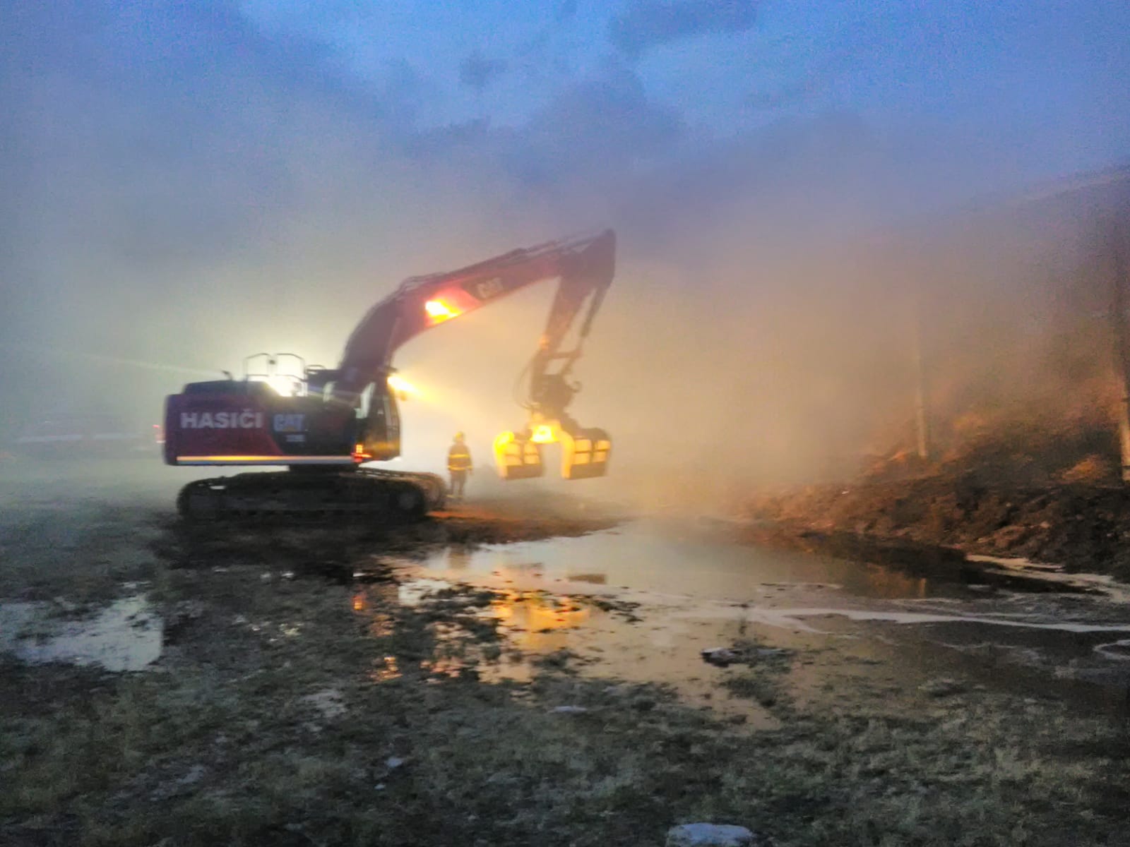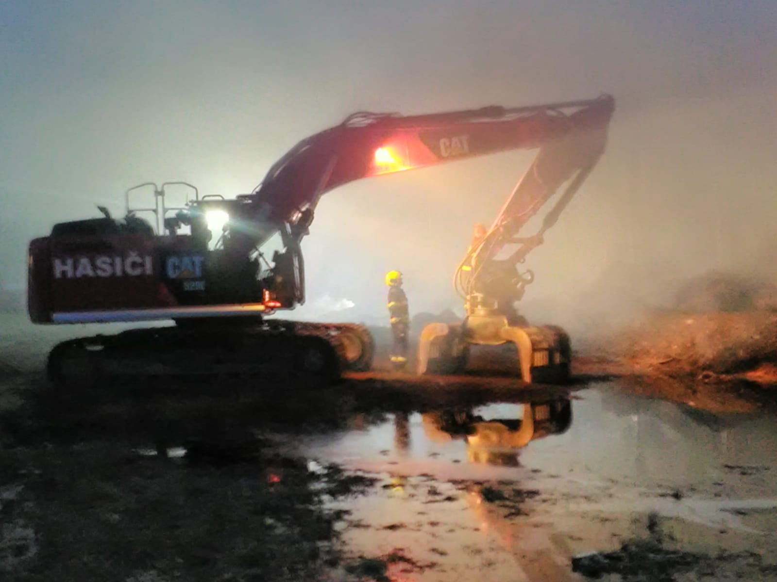 Velitel zásahu nahlásil lokalizaci požáru, tzn. že je pod kontrolou zasahujících hasičů. Zásah však neskončil. Pro všechny zasahující hasiče pokračoval po celou noc do následujícího dne. Povolaným nakladačem, který ze své dislokace v Jihlavě na požářiště dorazil okolo 21. hodiny, byly v průběhu večera a noci všechny balíky ze skladu vyskladňovány a na volném prostranství vodou dohašovány. Jako další posilová jednotka u požáru zasahovali v rámci mezikrajské výpomoci také profesionální hasiči HZS Plzeňského kraje, konkrétně ze stanice Horažďovice.