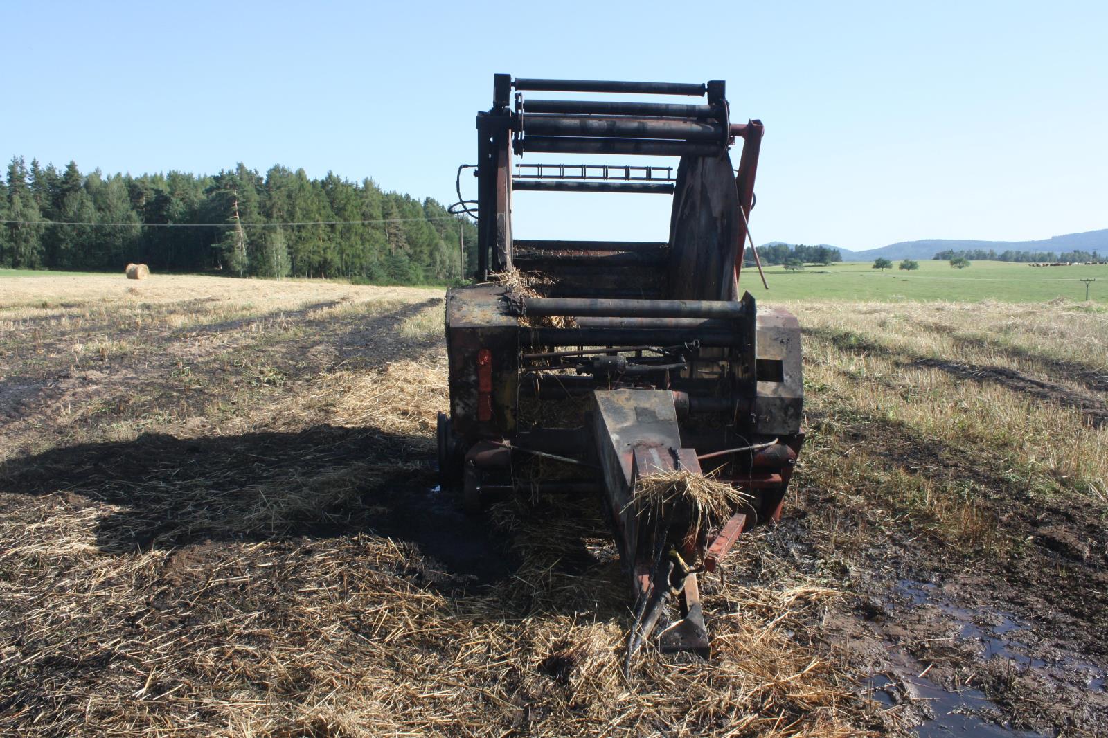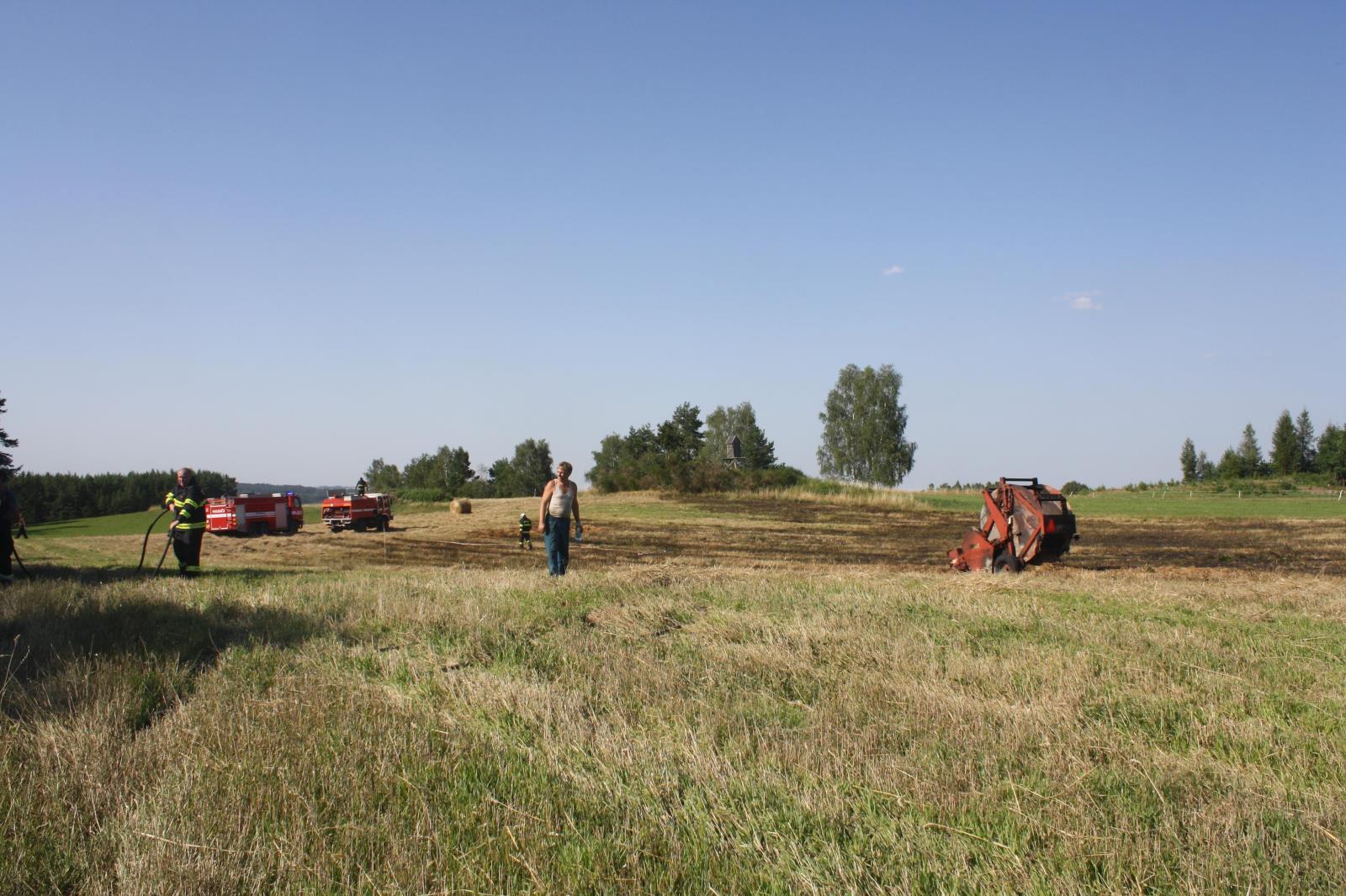 Největší škodu ve výši 1 500 000,- způsobil požár, který na poli u Kaplice, části obce Žďár zničil v pondělí balíkovací stroj.
