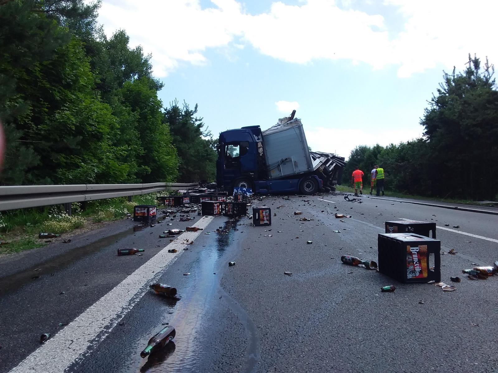Informaci o nehodě přijali hasiči v 13:46 hodin. Na místo vyslali profesionální jednotku ze stanice Písek. Průzkum na místě nehody ukázal, že jde o střet kamiónu převážejícího pivo, dodávky VW Crafter a osobního auta značky Škoda. Kamion měl převrácený návěs a veškerý náklad piva rozsypaný po silnici. Škoda zůstala po nárazu do Crafteru na silnici, Crafter stál za krajnicí. Zdravotníci ZZS si do své péče převzali jednu zraněnou osobu, vyproštění nebylo potřeba.