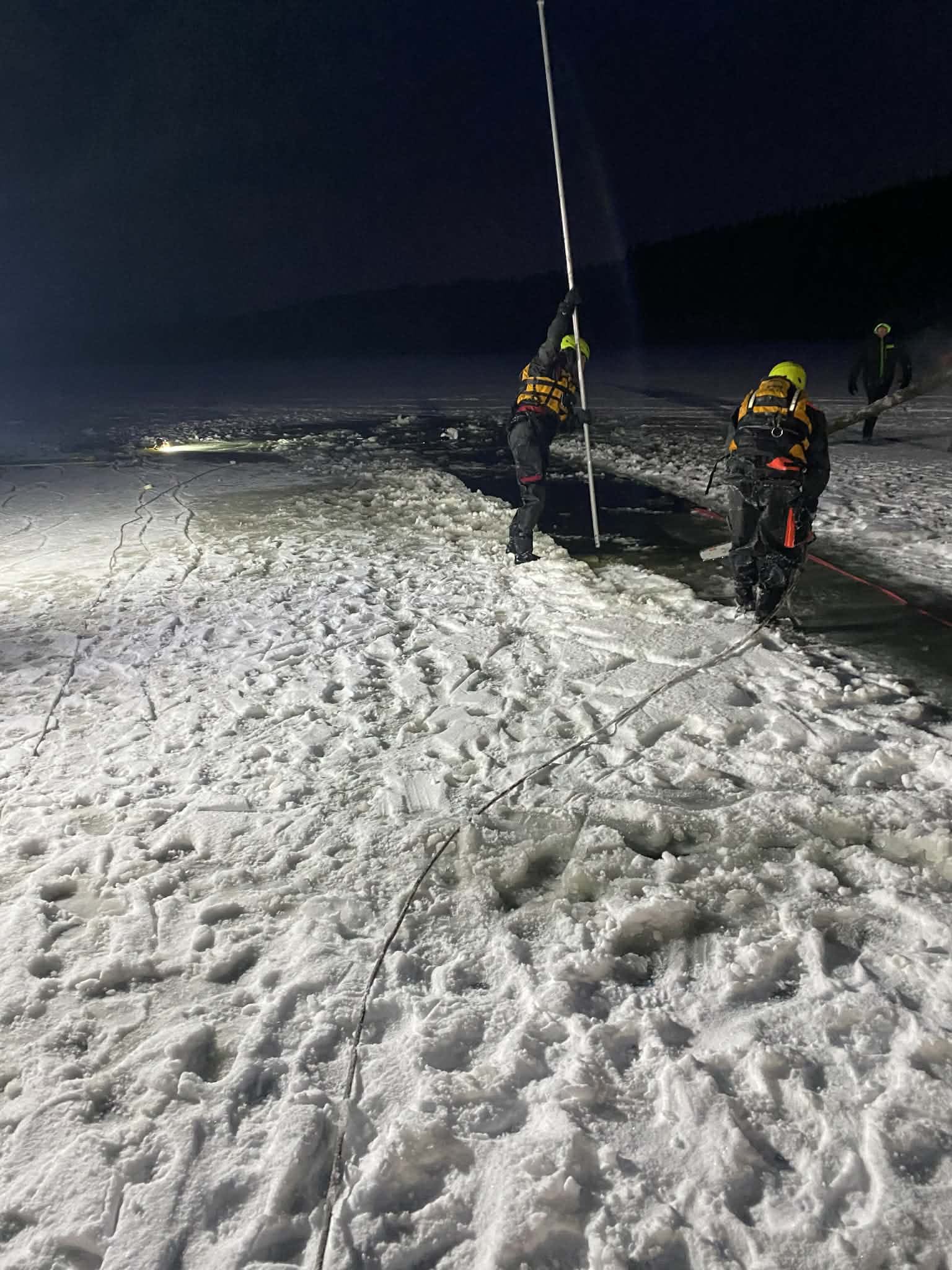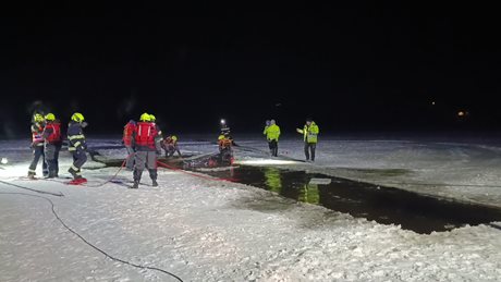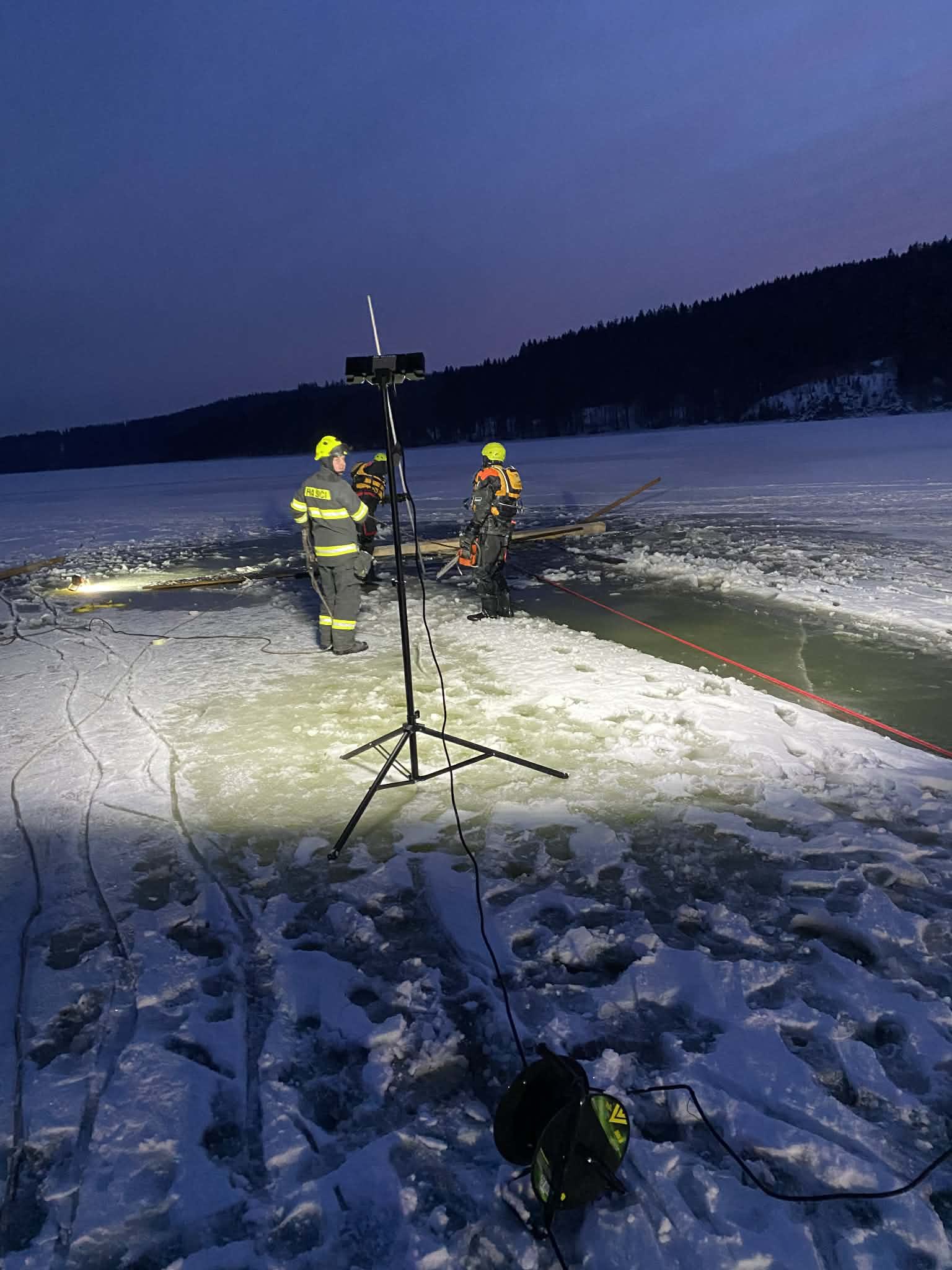 Zásah hasičů u zamrzlé hladiny kvůli potopené čtyřkolce