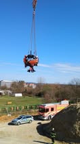 Na místo vyrazily pozemní posádky zdravotnické záchranné služby i letecká záchranná služba. Záchranáři se k muži dostali za pomoci žebříků. Při prvotním vyšetření vzniklo podezření na vážné poranění hlavy. Pacient byl zajištěn, dostal potřebné léky a byl uložen do vakuové matrace. Původně se počítalo s transportem pomocí vrtulníku, ale kvůli přítomnosti stavebních jeřábů nebylo možné tento postup využít. Stav zraněného se začal zhoršovat, a proto bylo nutné jednat rychle. Po dohodě s hasiči bylo rozhodnuto využít stavební jeřáb, pomocí kterého byl pacient bezpečně spuštěn na zem.