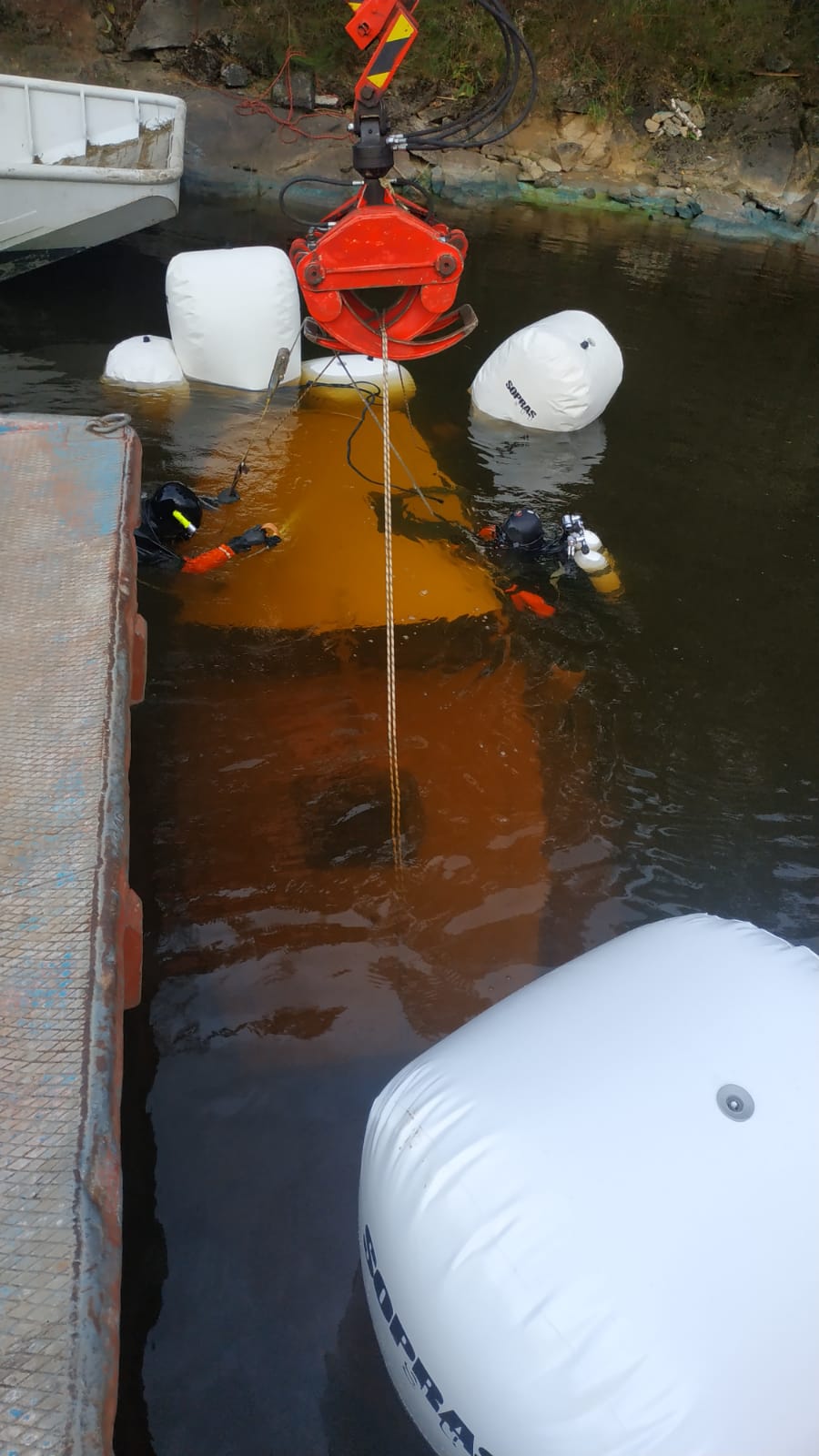 Zásah potápečské skupiny - vytažení potopené lodě