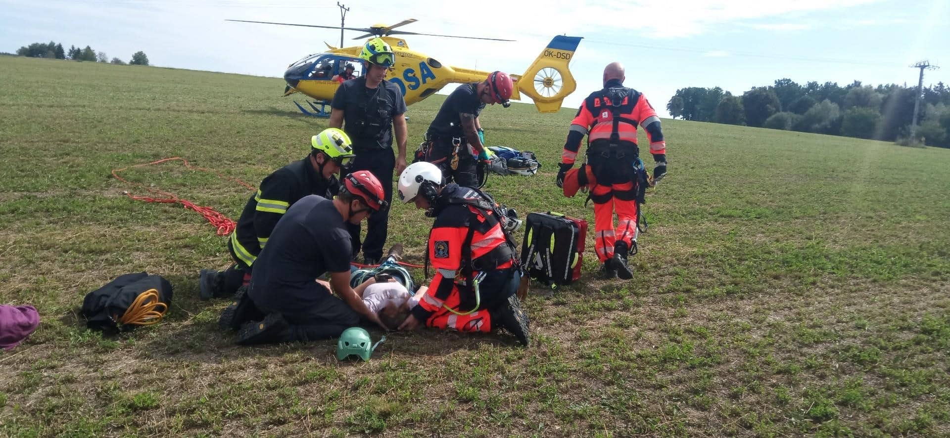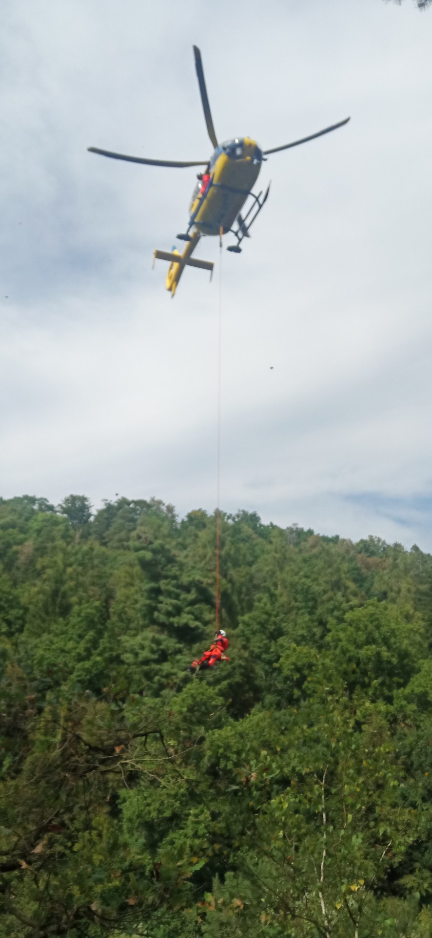 Žena omdlela na skalní stěně, hasiči ji zachránili s pomocí vrtulníku