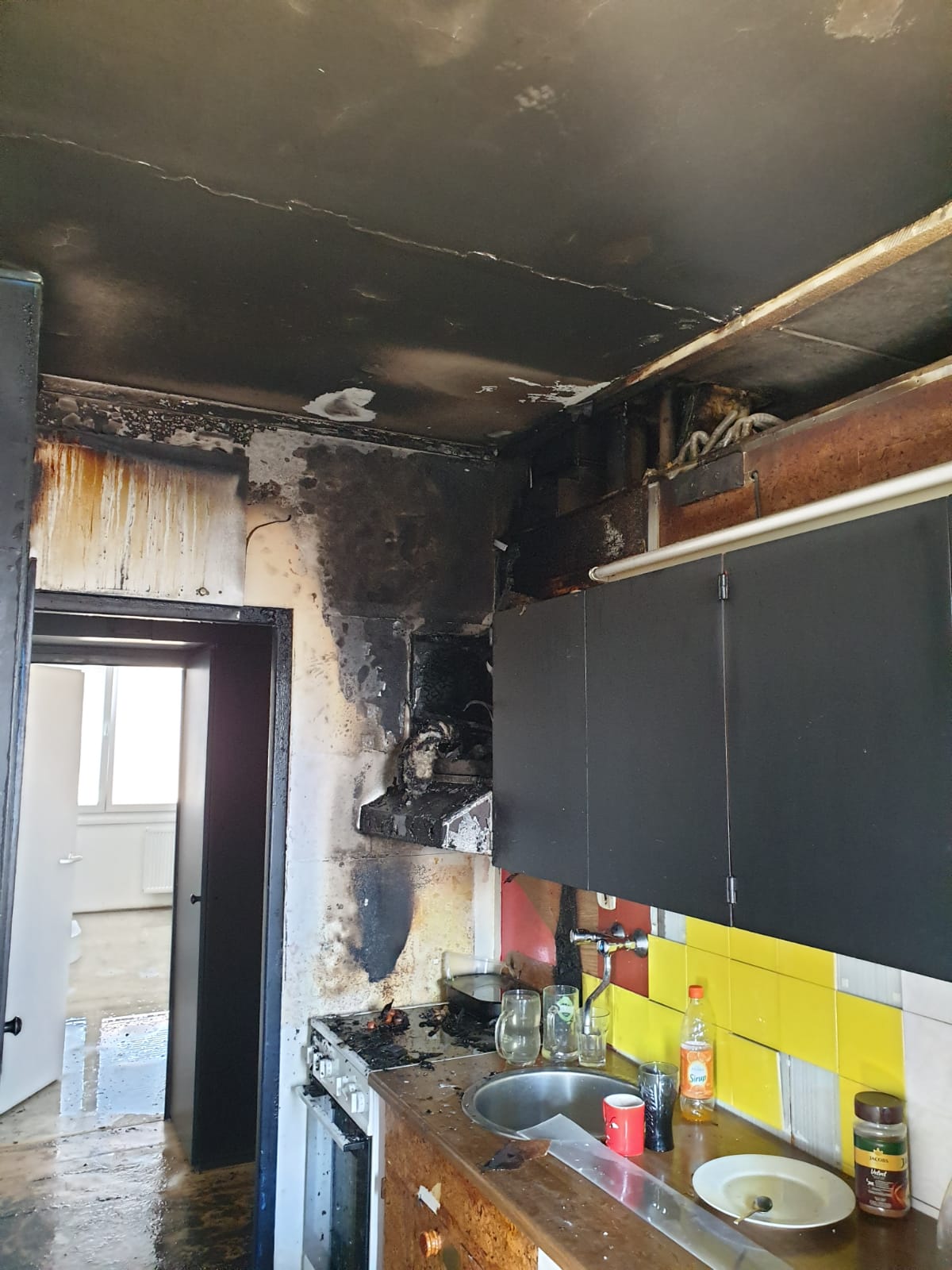 K požáru, který byl na tísňovou linku ohlášen v 10:35 hodin, byli vysláni profesionální hasiči ze stanice Kaplice a svolány byly jednotky dobrovolných hasičů obcí Kaplice – Hubenov a Velešín. Průzkum ukázal, že hoří v kuchyni jednoho z bytů ve třetím patře domu. Požár ničil digestoř, kuchyňskou linku, umakartové jádro, poškozeny byly také rozvody vody. Z jednoho z přehořelých rozvodů vytekla voda a tato voda ze stoupačky vzniklý požár uhasila. Hasiči nemuseli zasahovat, provedli „pouze“ kontrolu řádného uhašení. Vzniklou škodu vyšetřovatel HZS stanovil na 100 000,- na shořelé kuchyni i vytopených bytech. Příčina vzniku požáru je kuriózní: vznícení odložených hořlavých předmětů položených na elektrickém sporáku, který zapnul pes uživatele, když se pokoušel vyskočit na sporák pro odloženou kost.