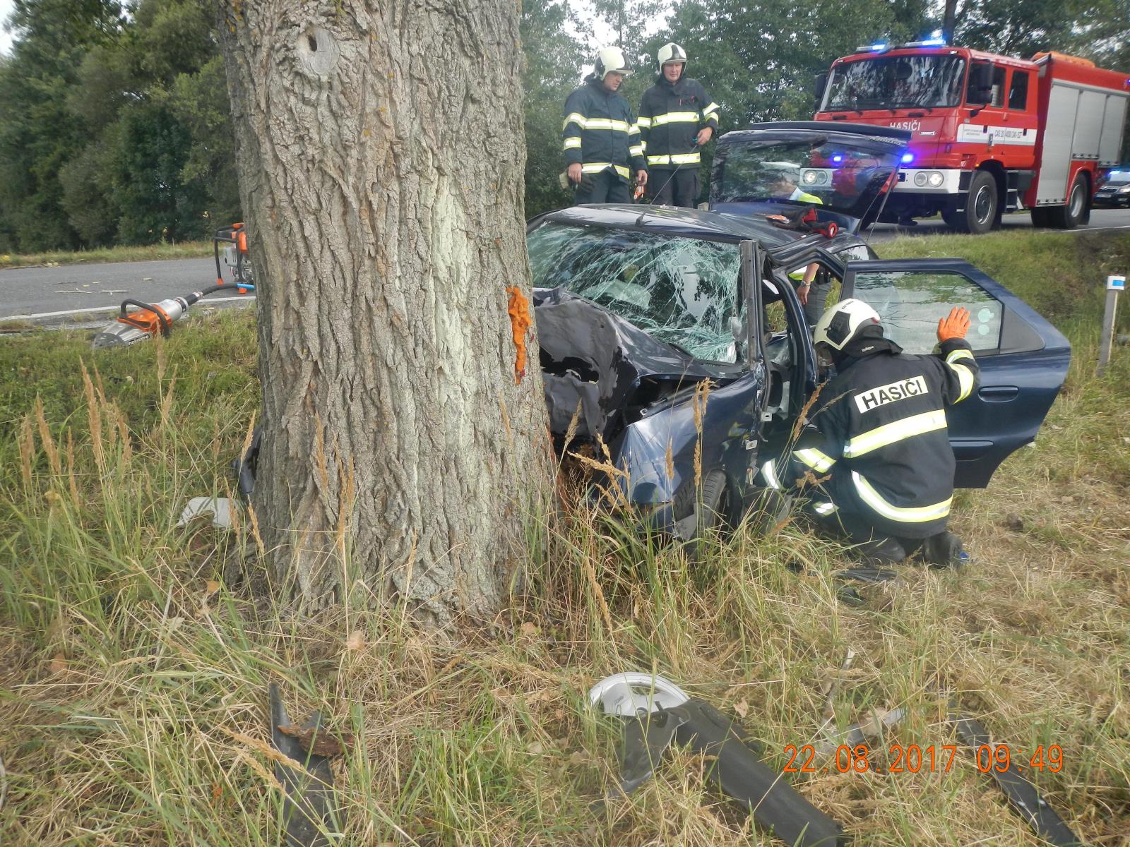 Průzkum na místě nehody ukázal, že jde o nehodu osobního automobilu tovární značky Citroen Xsara, ve kterém zůstala zaklíněna jedna zraněná osoba. Zasahující hasiči zajistili auto proti požáru a proti pohybu, aby mohli zraněnou řidičku vyprostit. Museli použit hydraulické vyprošťovací zařízení, kterým odstřihli dveře a následně odtlačili palubní desku. Řidičku pak po nasazení krčního límce vyprostili na zádové desce před kufr vozu poté, co odstranili opěradla zadních sedadel. Po vyproštění hasiči asistovali zdravotníkům při ošetření zraněné. Do nemocnice byla transportována letecky. Nehodu šetří Policie ČR.