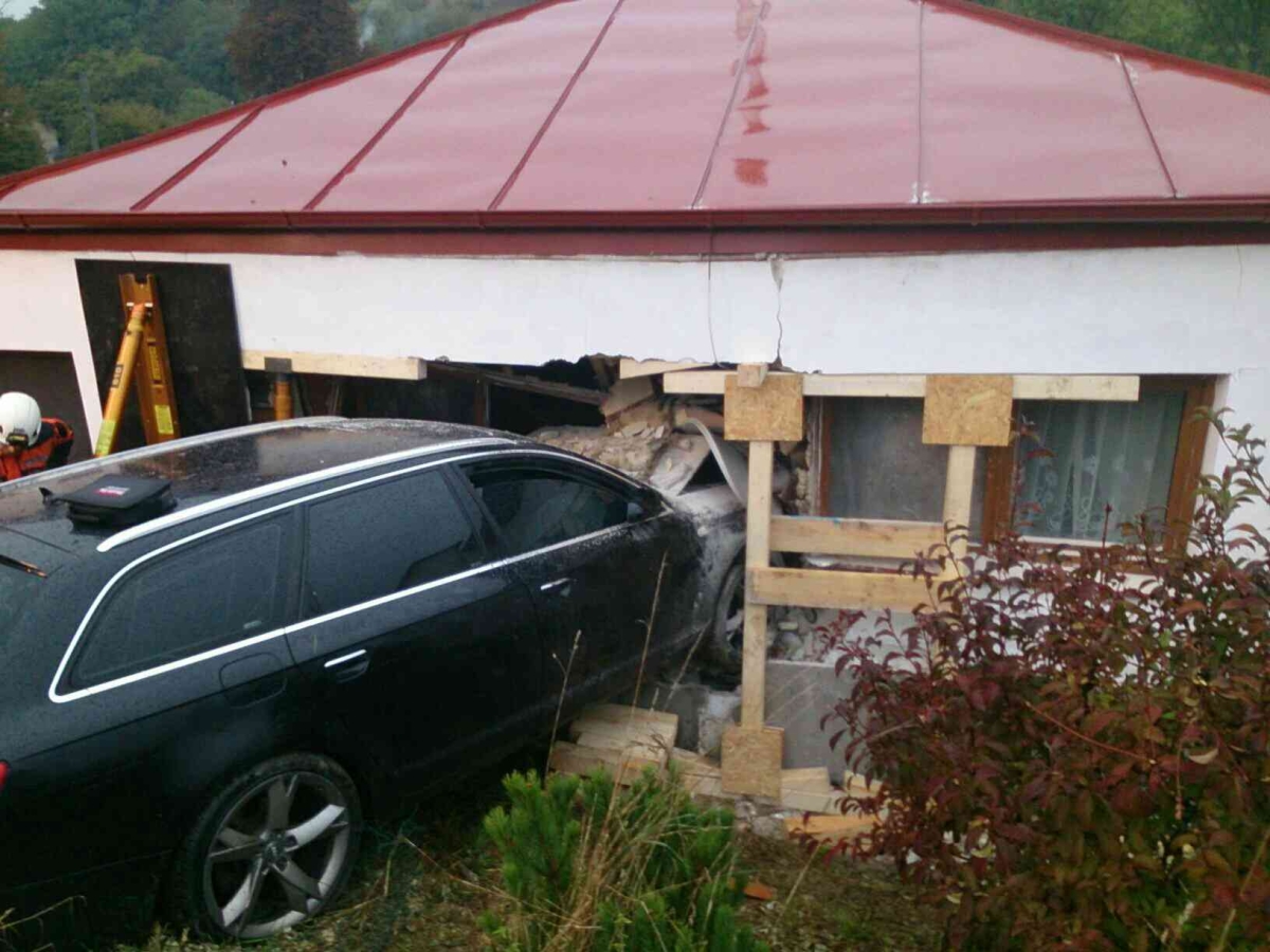 V Sebranicích krátce před patnáctou hodinou havarovalo osobní vozidlo Audi. Narazilo do rodinného domu a probořilo zeď do obývacího pokoje. Při nehodě se nikdo nezranil. Zajistili jsme stěnu domu pomocí výdřevy před dalším zřícením a následně odtáhli havarované auto vyprošťovacím speciálem. Stav rodinného domu posoudí statik. V osmnáct hodin jsme zásah ukončili.