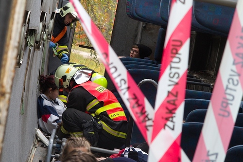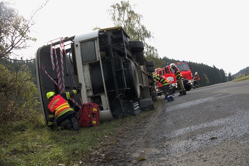 Hasiči procvičili vyprošťování osob z autobusu, třídění zraněných metodou START a jejich transport do péče posádek ZZS. Cvičení prověřilo spolupráci hlavních složek IZS.