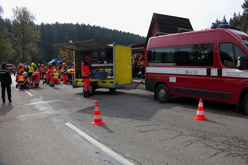 Na Blanensku 4.října 2017 ráno havaroval autobus a osobní auto. Vážná nehoda s velkým počtem zraněných byla námětem cvičení složek IZS mezi Holštejnem a Ostrovem u Macochy.