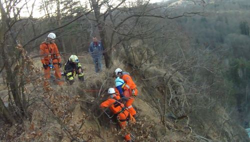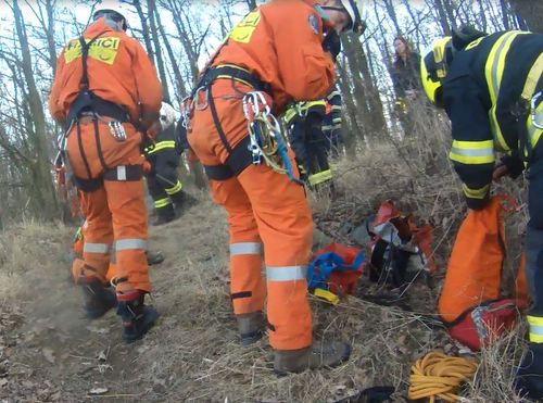 V pátek 3 března 2017 v lomu u Želešic na Brněnsku spadla mladá žena z vysokého srázu. Hasiči ji a jejího psa museli zachránit...