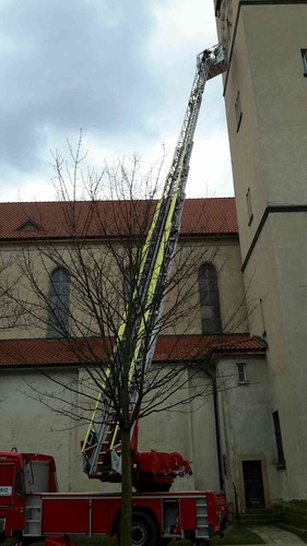 Před třináctou hodinou pomocí automobilového žebříku