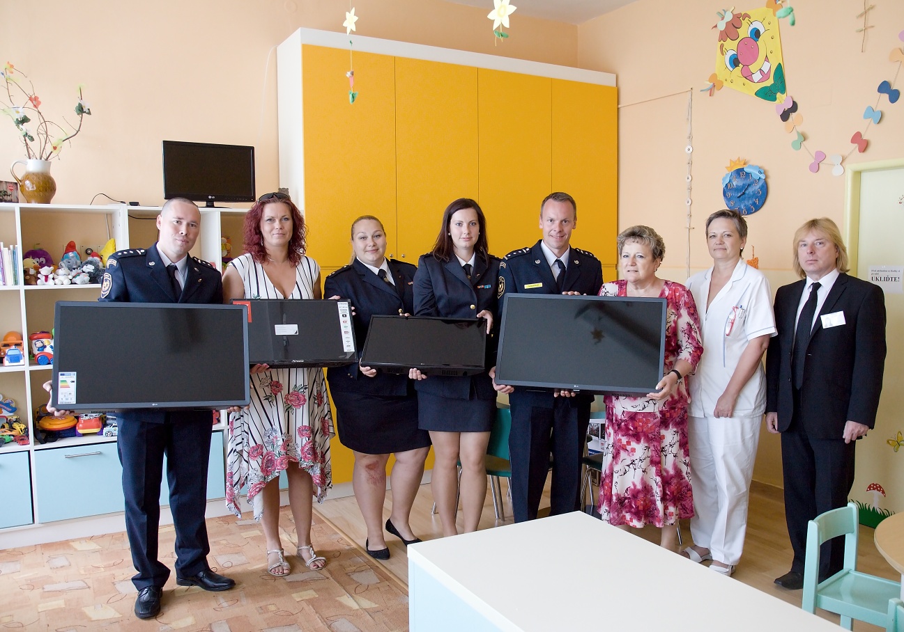 Čtvrtek,  6. červen 2019 - Hasiči z Územního odboru Vyškov HZS Jihomoravského kraje a členové SDH Drnovice se rozhodli podpořit Dětské a dorostové oddělení nemocnice Vyškov. Aby zpříjemnili dětem pobyt v nemocnici, pořídili z vlastních prostředků čtyři nové televizory v hodnotě 22 tisíc korun.