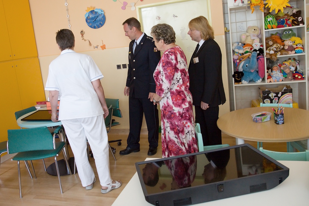Nové moderní televizory disponující připojením na internet nahradí již dosluhující přístroje, které na oddělení jsou. Dnes je profesionální hasiči a členky SDH Drnovice předali ředitelce nemocnice paní Věře Seidlové. Společného setkání se účastnil také ekonomický náměstek nemocnice Radek Klimeš a vrchní sestra dětského oddělení Renata Indrová.