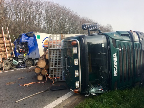Dopravní nehoda tří kamionů okamžitě zablokovala dálnici D1 ve směru na Prahu u exitu Rohlenka. Jeden kamion zůstal po střetu na boku a došlo k uvolnění nákladu - dřevěných klád. Řidič polského kamionu zůstal zaklíněný v kabině. Hasiči museli okamžitě začít s vyprošťováním a zároveň zajištěním uvolněných klád, které hrozily dalším sesunutím.