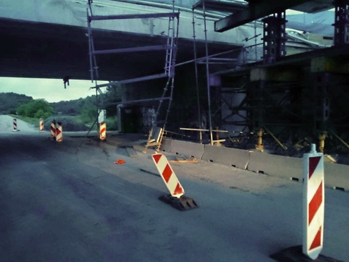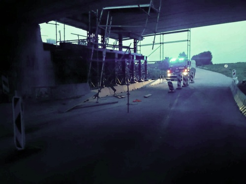 Dopravní nehoda osobního auta, které se nabouralo do lešení u rekonstruovaného mostu pod dálnicí D1.