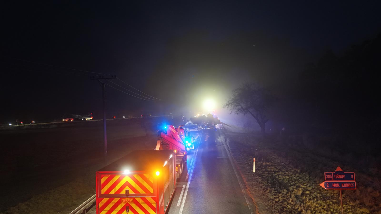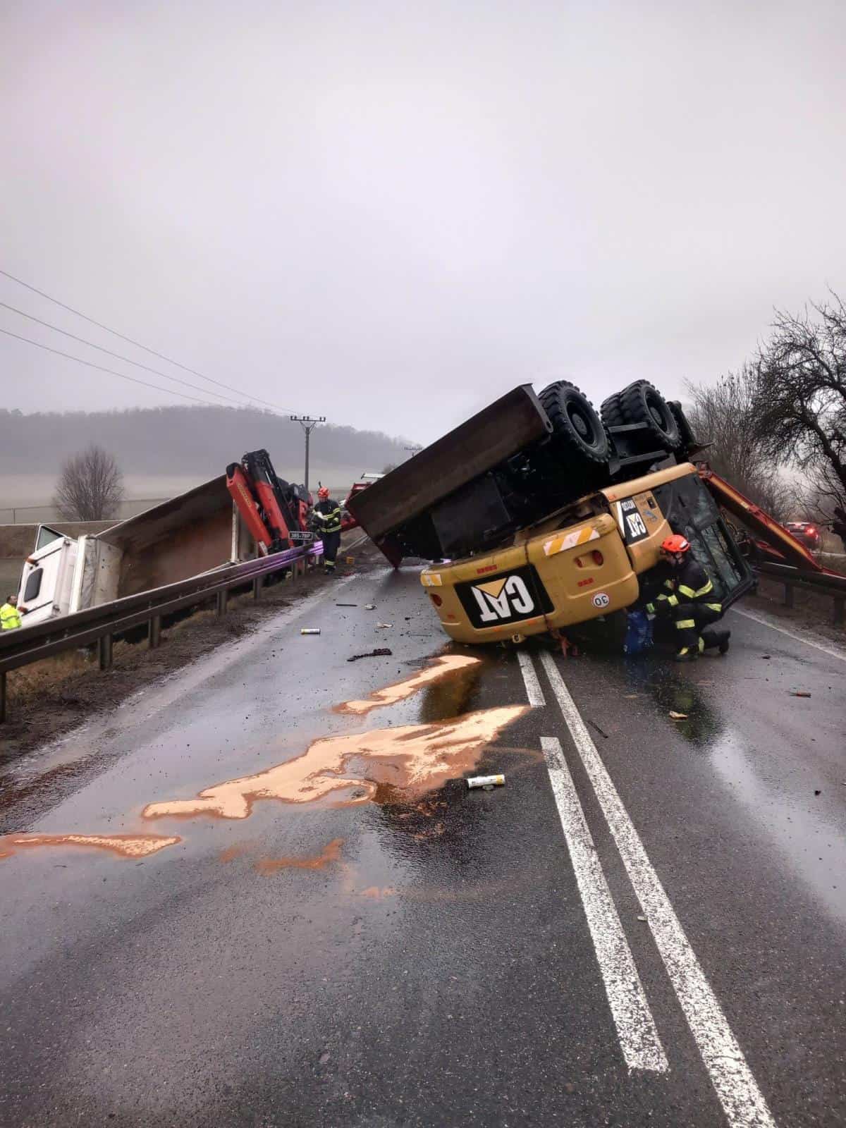Dopravní nehoda s nákladním vozem zablokovala silnici, hasiči zasahovali na místě
