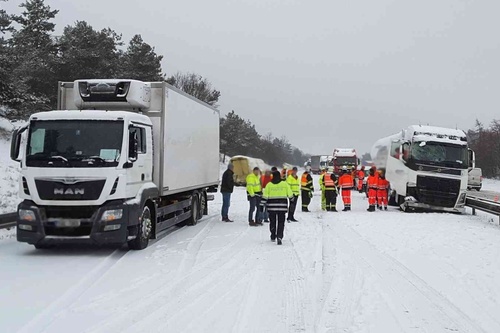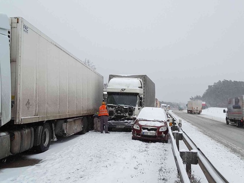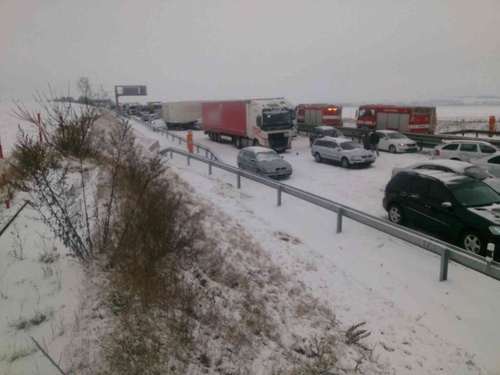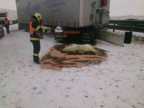 Dálnici D2 ve směru na Bratislavu ochromily dvě nehody kamionů na 5. a 9. kilometru. Z kamionu na pátém kilometru hasiči odčerpali několik stovek litrů nafty, aby nedošlo k úniku. Nehoda byla vyřešena před šestnáctou hodinou. Aby byla nehoda na devátém kilometru odstraněna, musel přijet hasičský vyprošťovací automobil, který předtím zasahoval u několika jiných nehod. Na místo se dostal patnáct minut před dvacátou hodinou. O půl deváté hasiči hlásili, že kamion vyprostili a zásah ukončili. Průjezd hasičské techniky opět znemožnili řidiči, kteří nevytvářeli dostatek místa mezi jízdními pruhy.